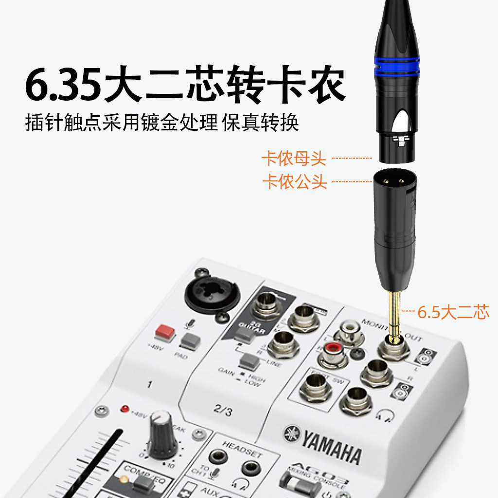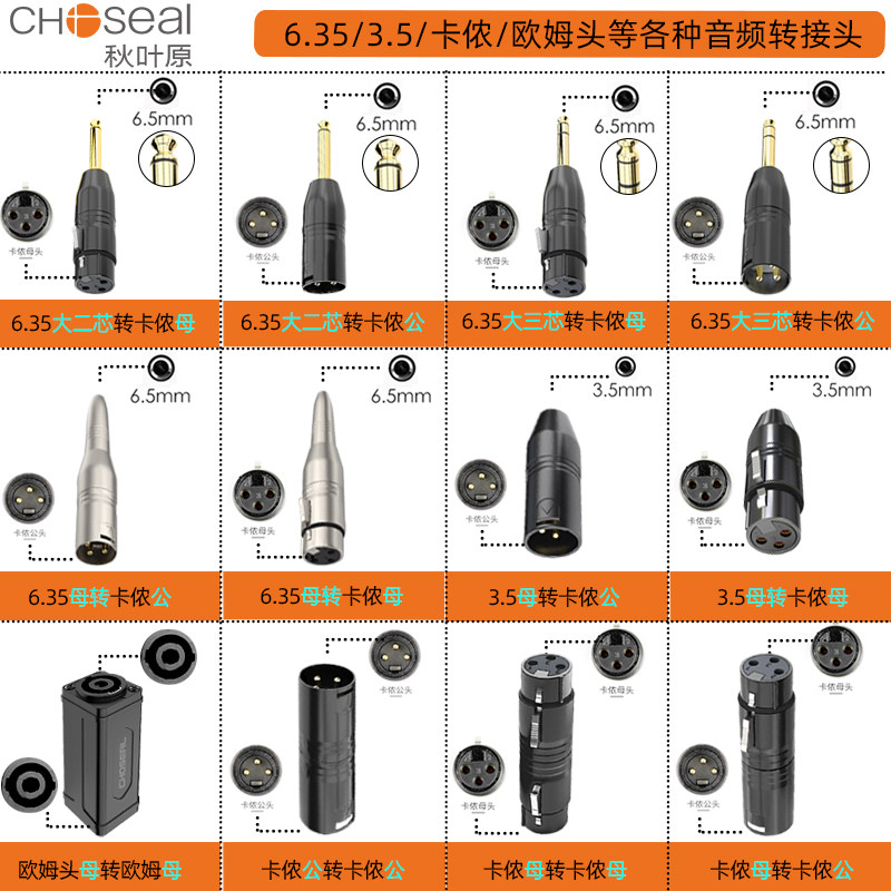 秋叶原卡农音频转换头卡侬公母头转6.5插头3.5转6.35莲花欧姆转接