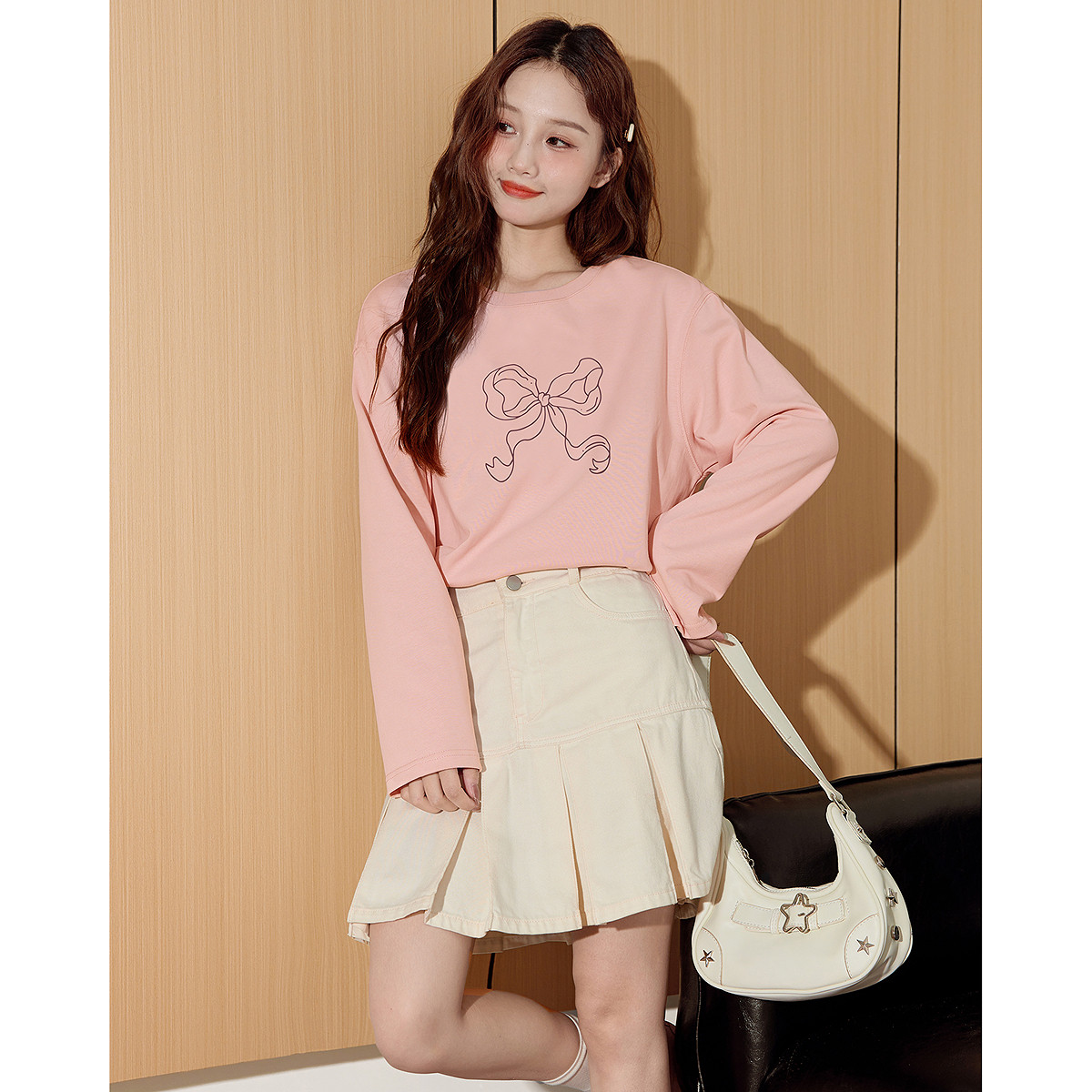 唐狮长袖女T恤衫秋上衣女新款宽松甜美内搭百搭打底衫女纯棉TD