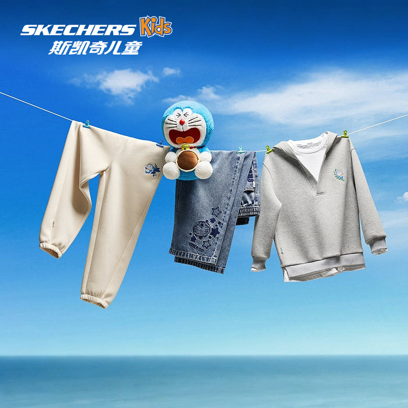 Skechers斯凯奇2026年春季哆啦A梦联名系列儿童中性宽松连帽卫衣