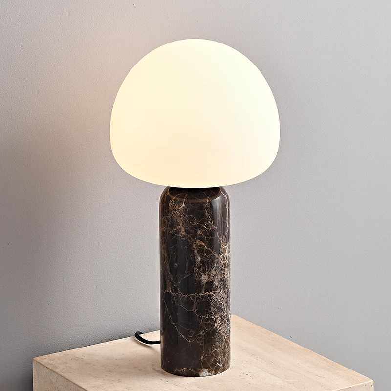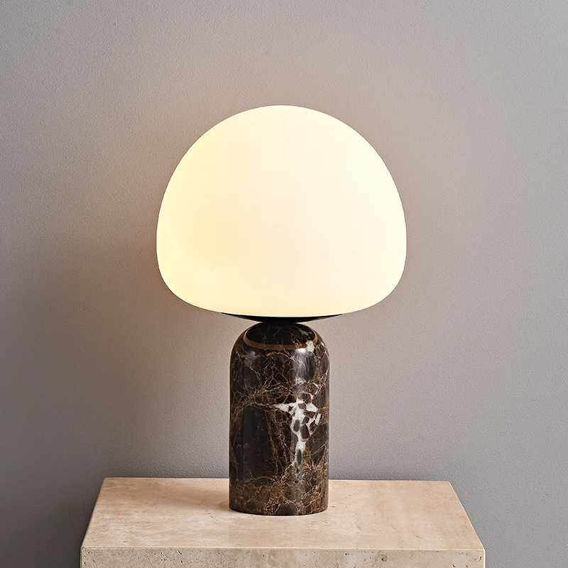 北欧极简玻璃轻奢天然大理石台灯寂风复古客厅卧室床头装饰摆件