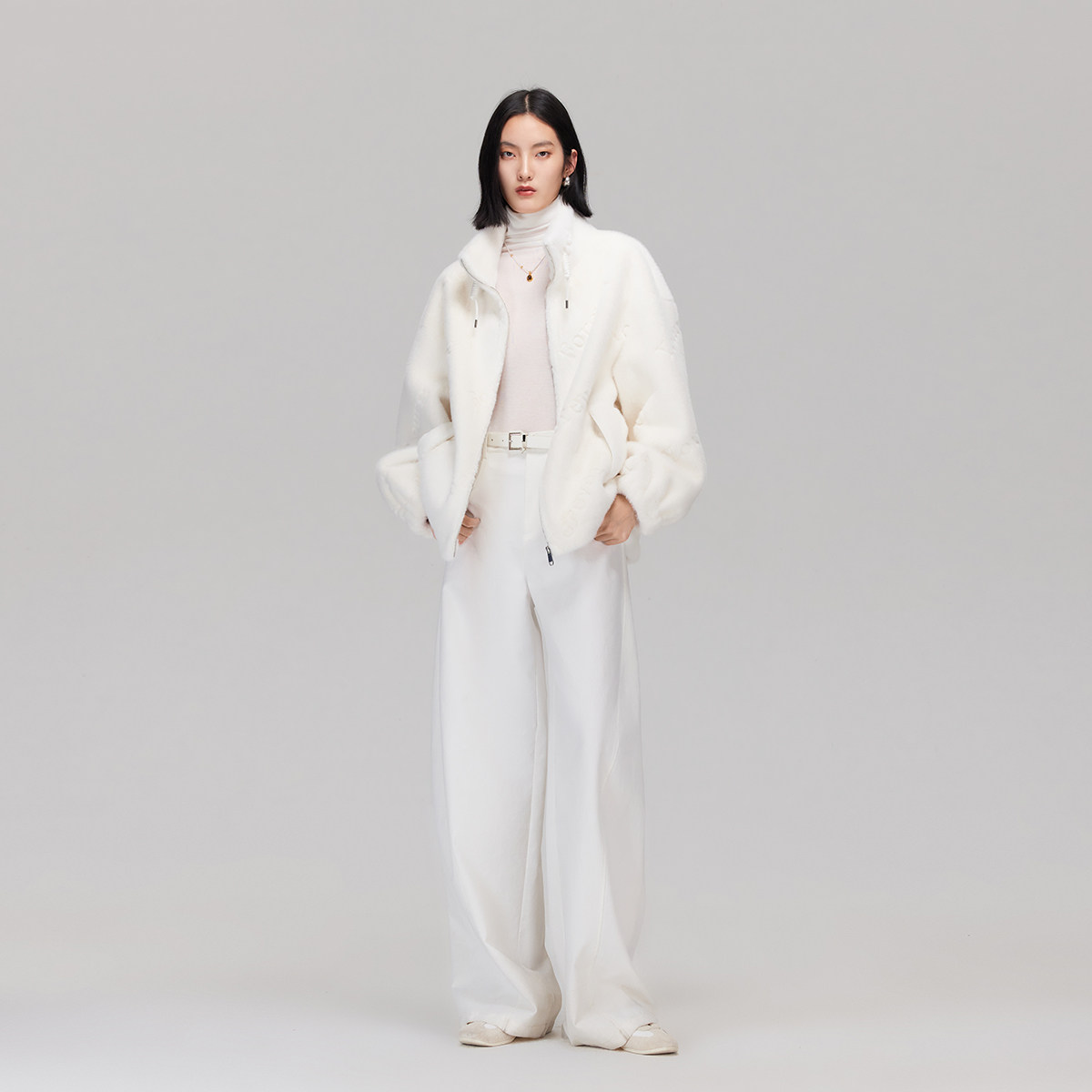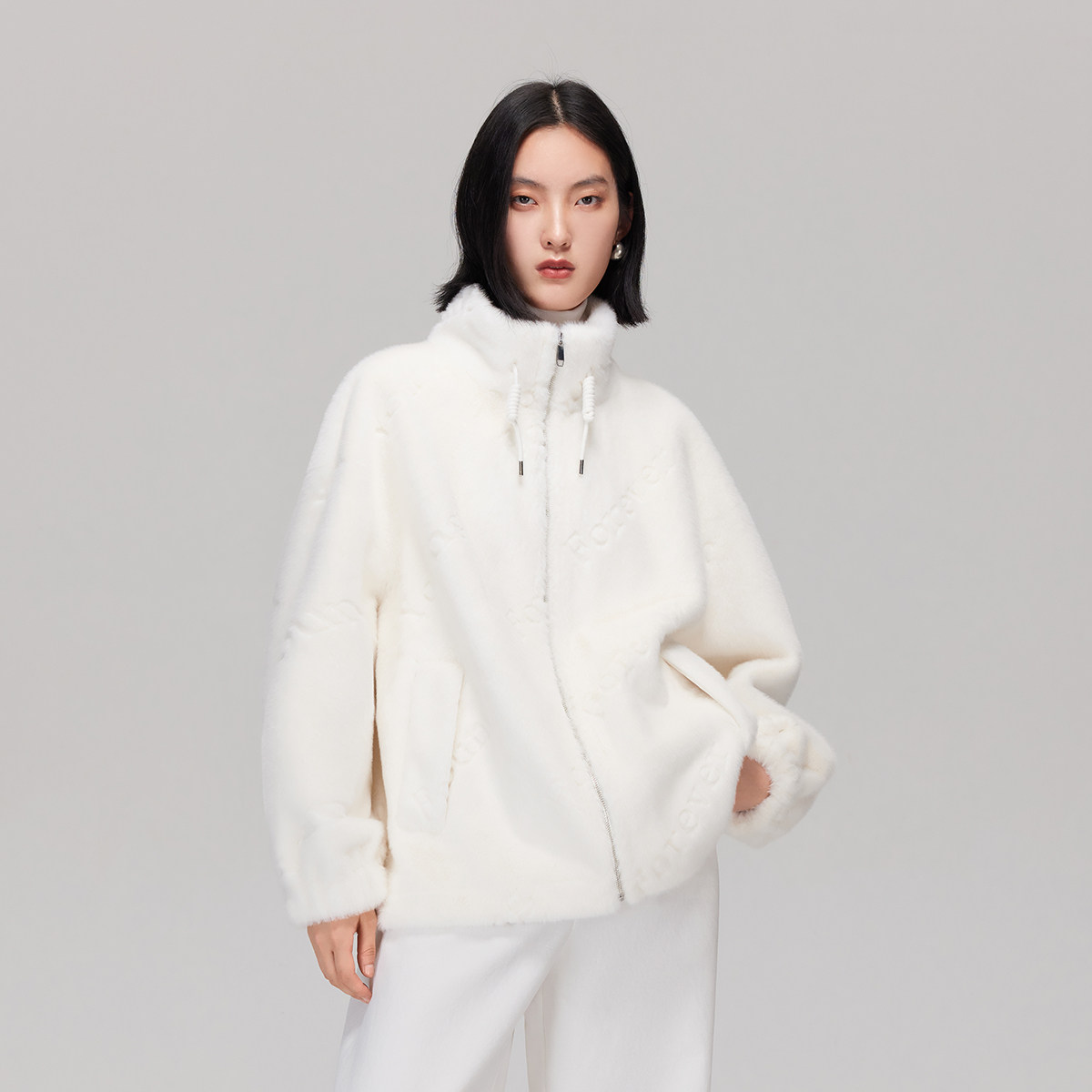 Vero Moda外套女2025秋季新款宽松立领落肩泰迪毛绒外套325309002