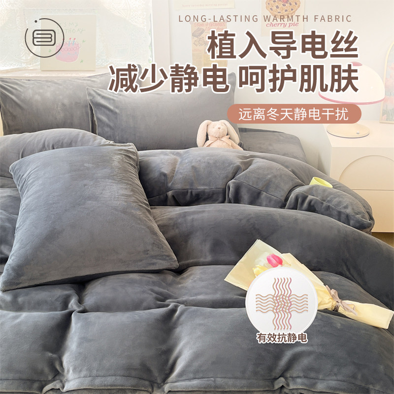 冬季加绒被套单件牛奶绒珊瑚绒宿舍单人单独毛绒被罩1.5米四件套3