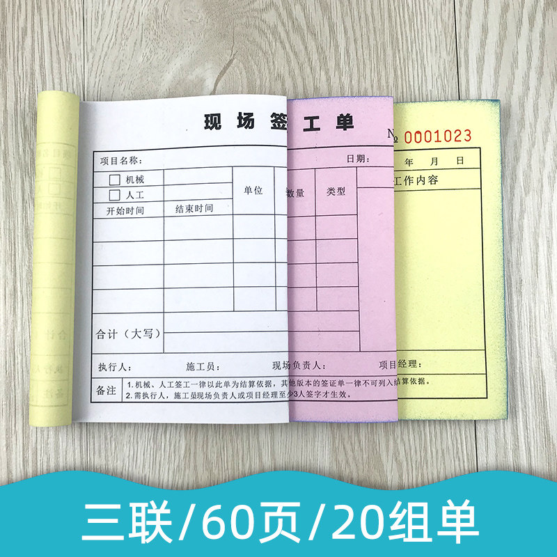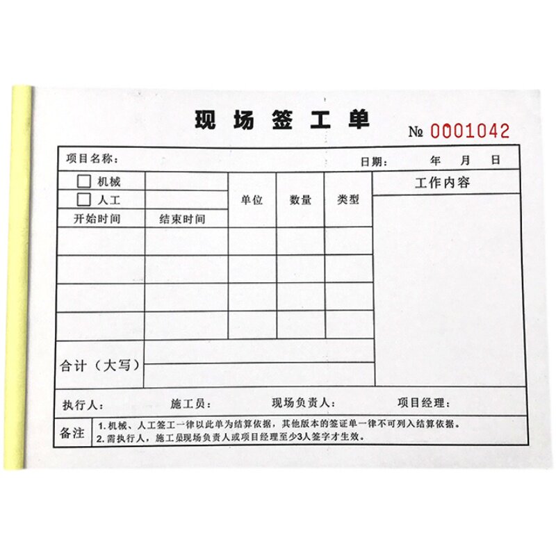 定制现场签工单二联三联工地施工派工结算单临时用工记工本完工单