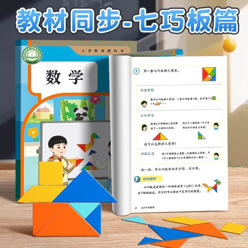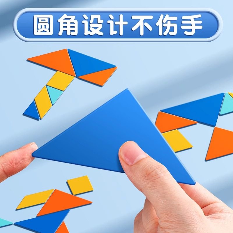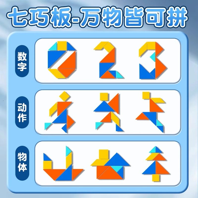 得力七巧板小学生教具智力拼图益智玩具经典几何图形认知木质拼板小学生专用幼儿园儿童一年级教具数学教具