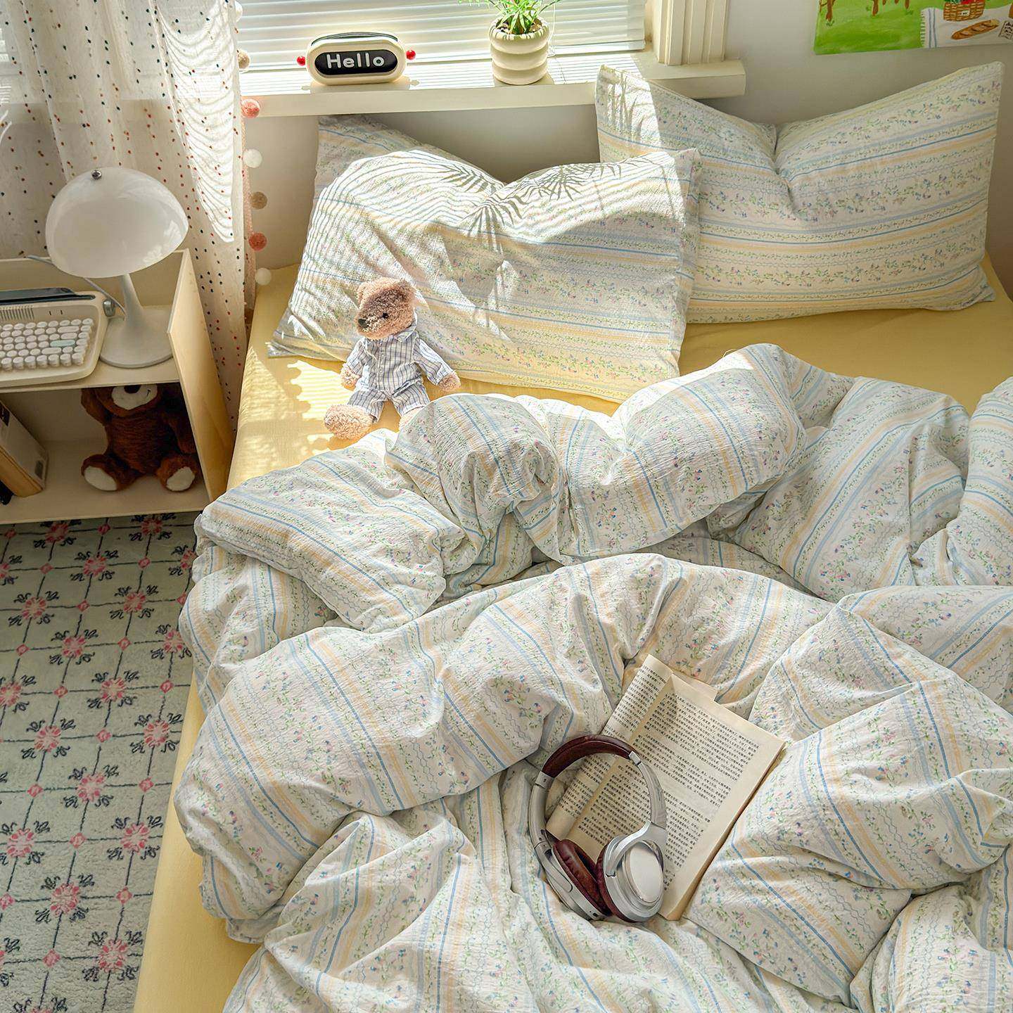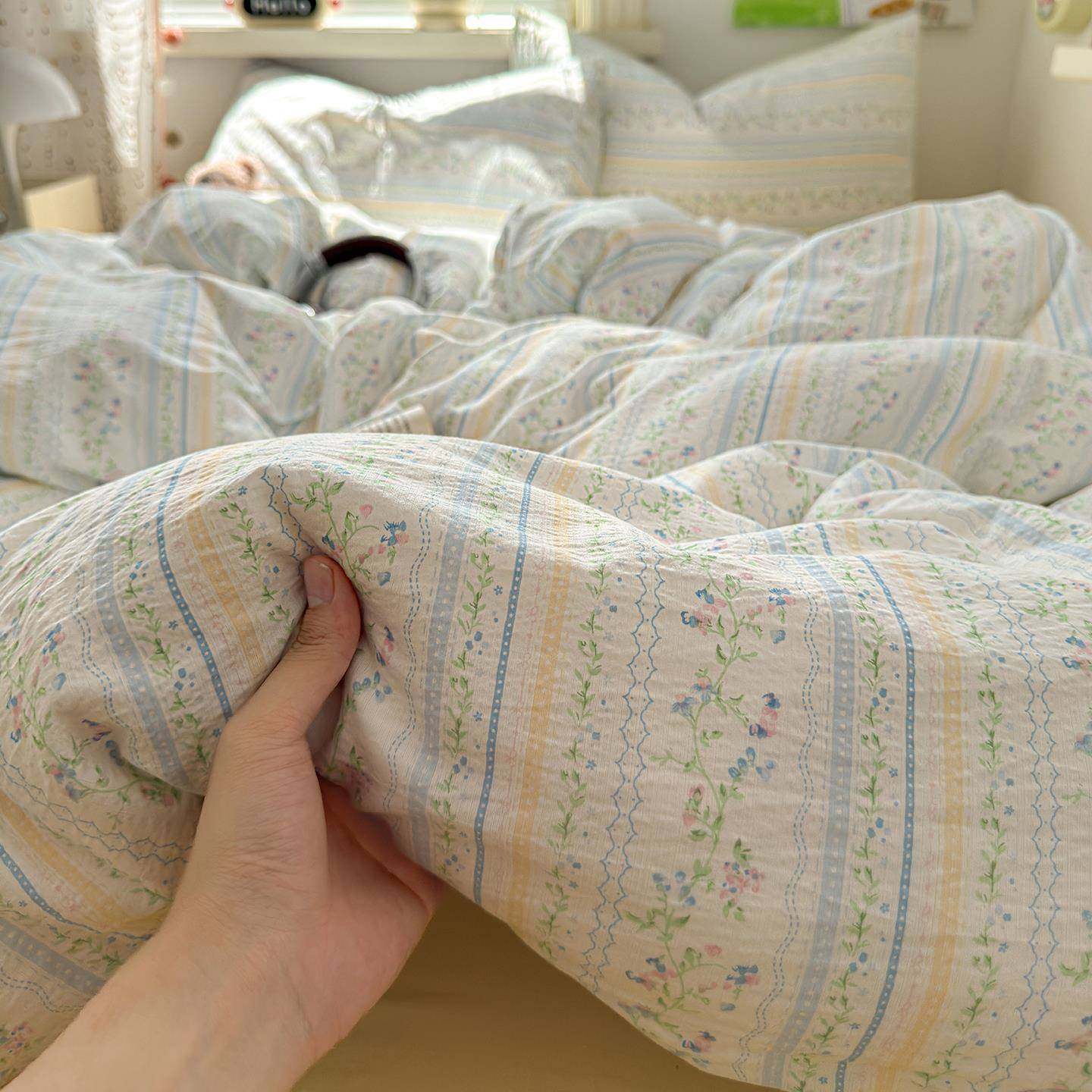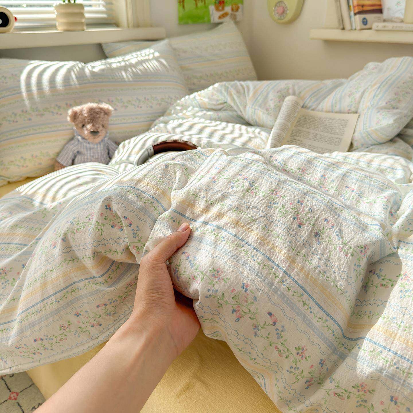 A类母婴级纯棉双层纱四件套全棉水洗棉被套床学生宿舍三件套被罩