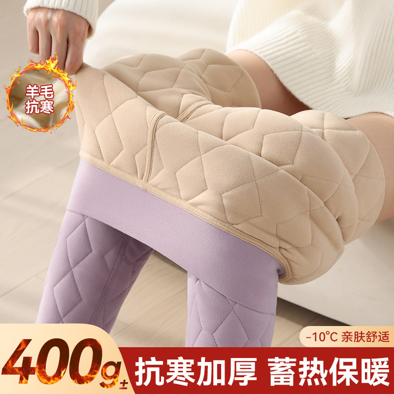 羊毛蚕丝秋裤女加厚加绒德无痕发热高腰保暖裤女羊毛棉裤打底裤冬