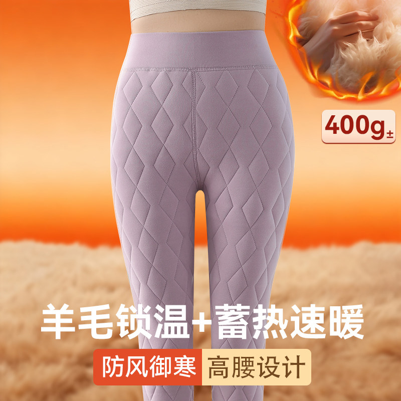 高腰秋裤女加厚加绒羊毛蚕丝打底裤女发热德绒无痕保暖羊绒棉裤冬