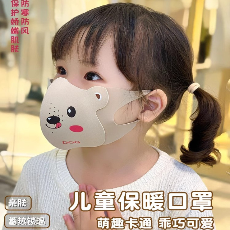 秋冬云朵绒卡通儿童口罩男女童小学生防寒防风透气面罩立体可爱