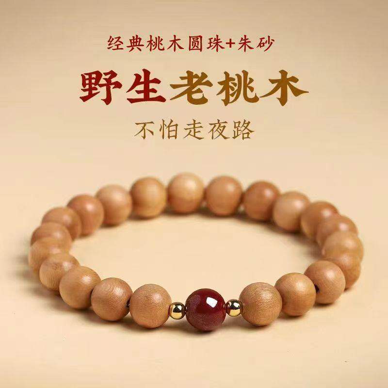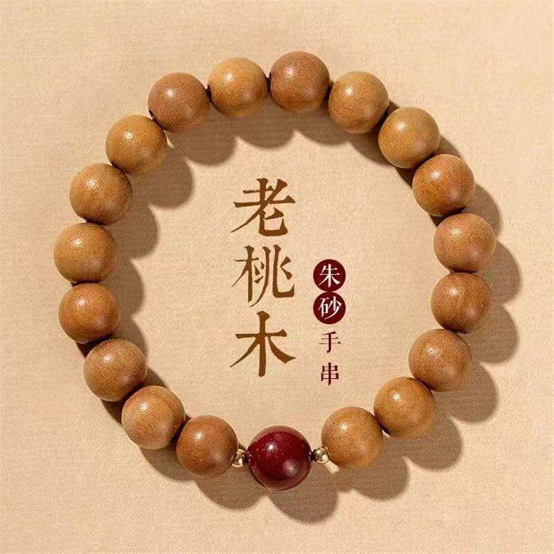 天然老桃木手串男女款念珠佛珠朱砂静心护身本命年手链木质转运珠