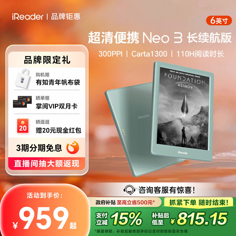【新品首发】掌阅iReader Neo3 长续航版电子书墨水屏阅读器6英寸电纸书水墨屏学生护眼小说看书漫画