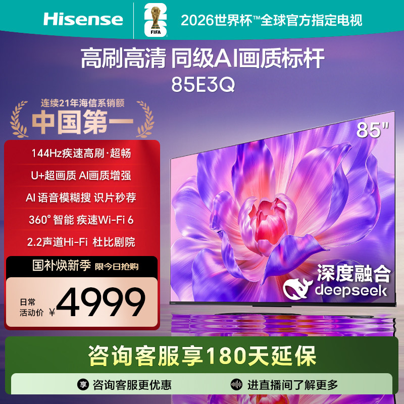 海信电视85E3Q 85英寸 高刷高清 AI画质标杆以旧换新补贴4K电视机