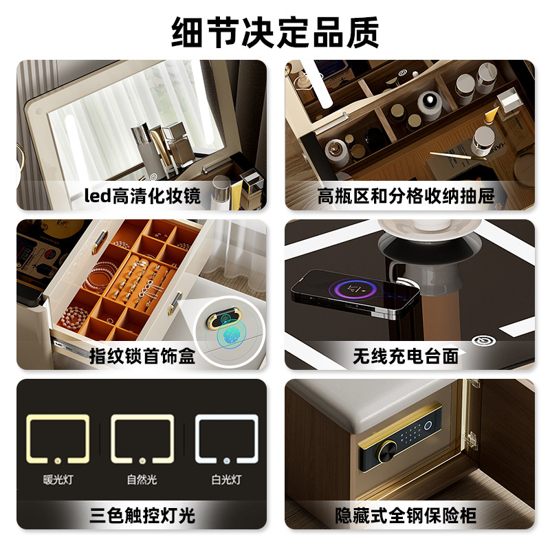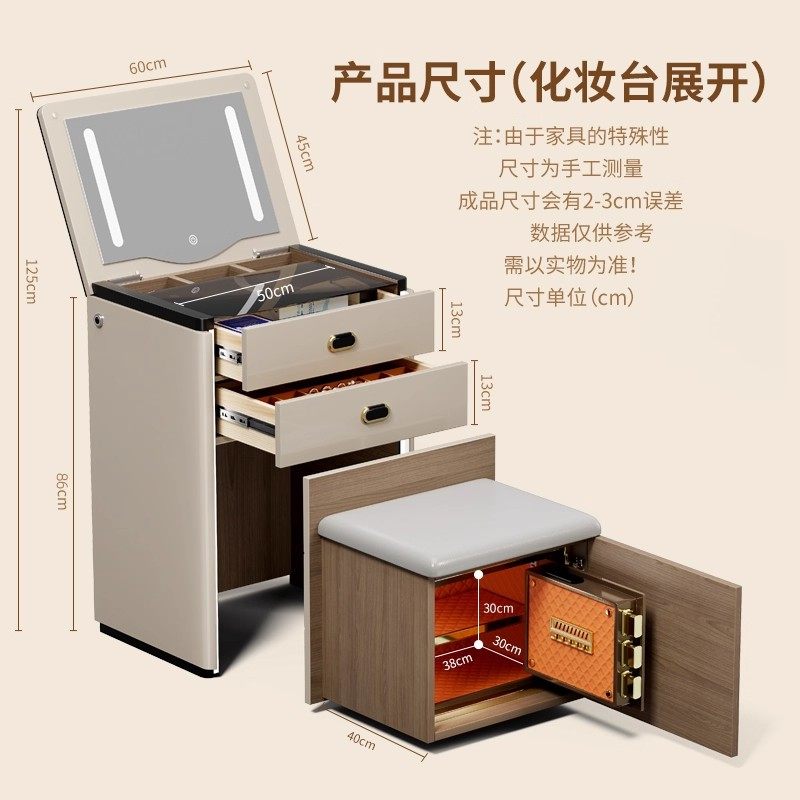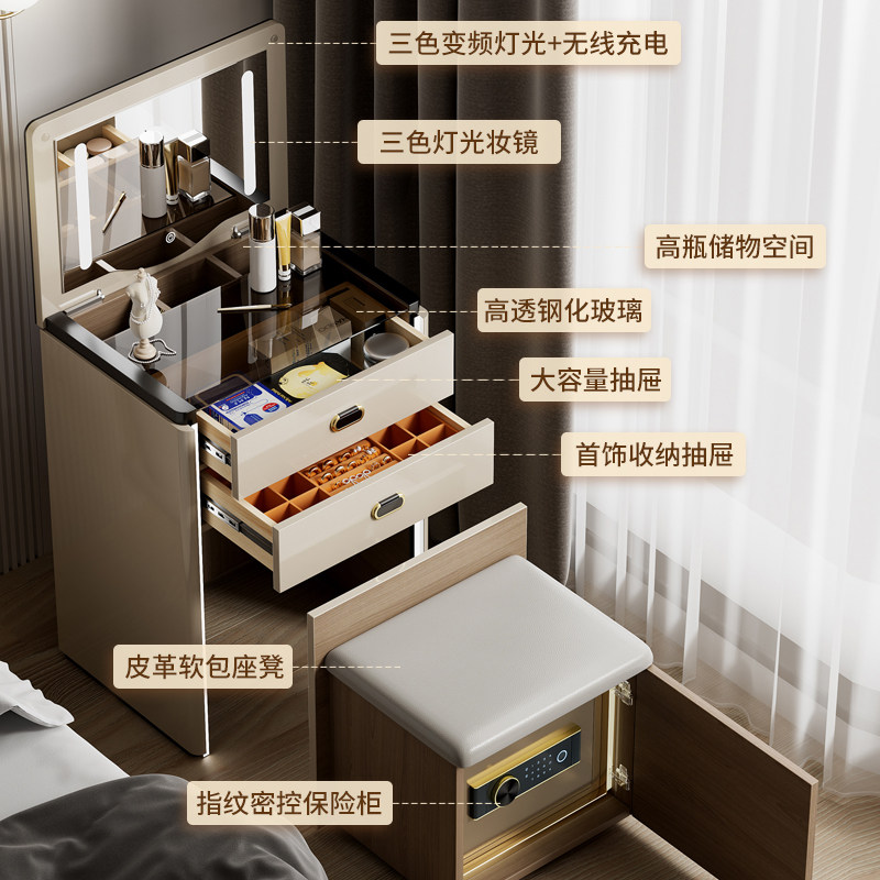 虎牌梳妆台保险柜一体2026新款保险柜家用卧室小型轻奢高级化妆桌 带LED化妆镜WiFi远程隐藏防盗保险箱梳妆台