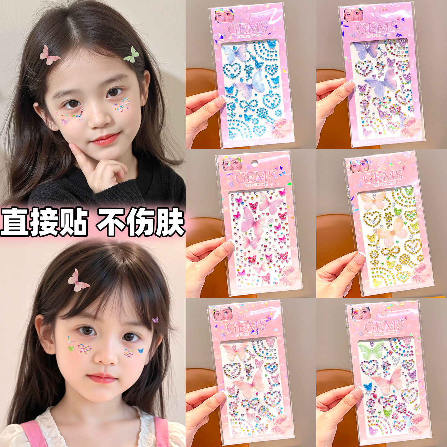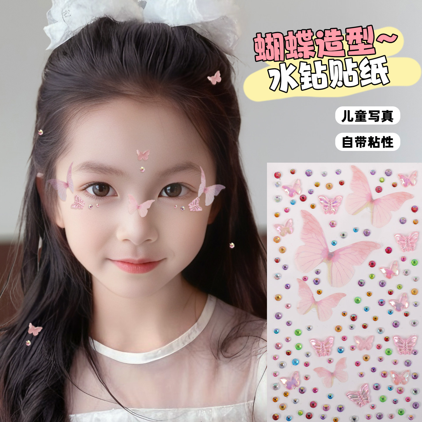 儿童蝴蝶贴纸舞台表演女童公主妆容贴演唱会装饰脸上贴薄纱蝴蝶面部装饰宝宝眼部小女孩写真拍照免胶自粘贴画