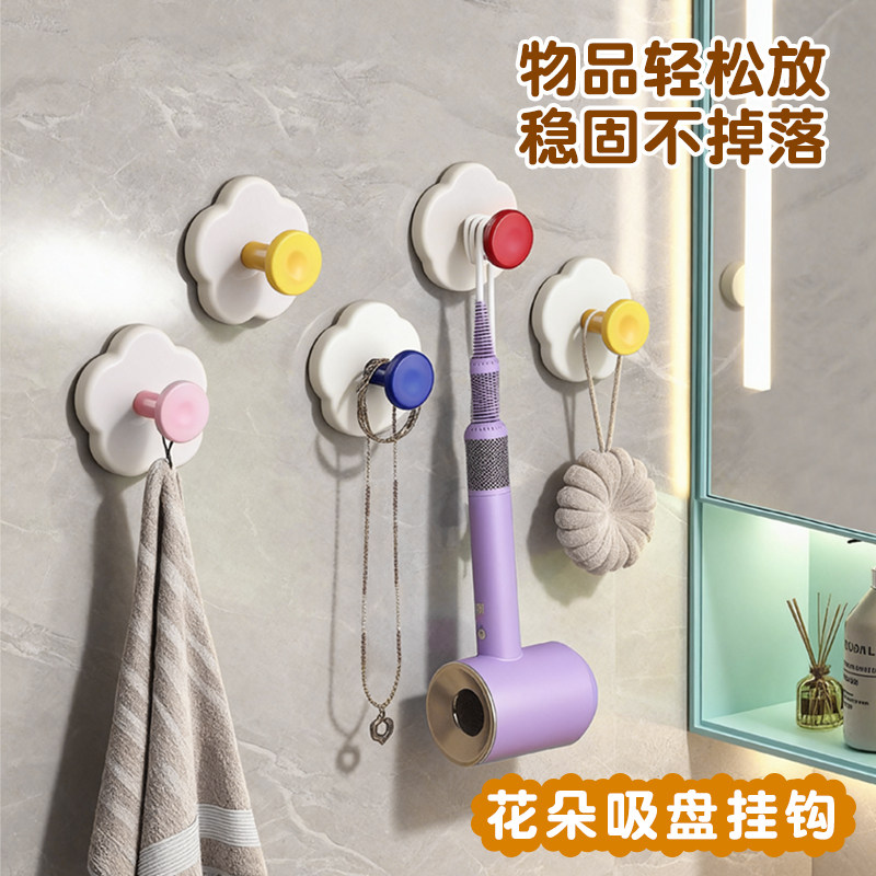 吸盘花朵挂钩真空无痕收纳免打孔粘钩家用浴室厨房门后卫生间吊钩