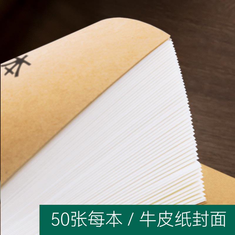 复古牛皮纸笔记本超厚空白本子加厚白纸本草稿本学习可平摊高颜值本记事本日记本a4a5小方格写作本大学生初中