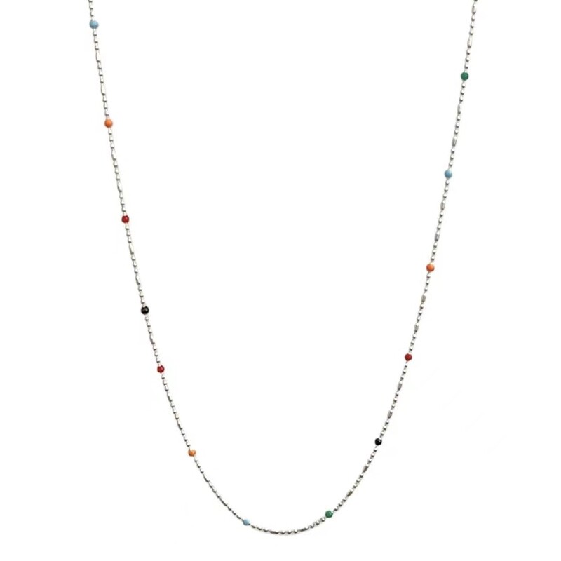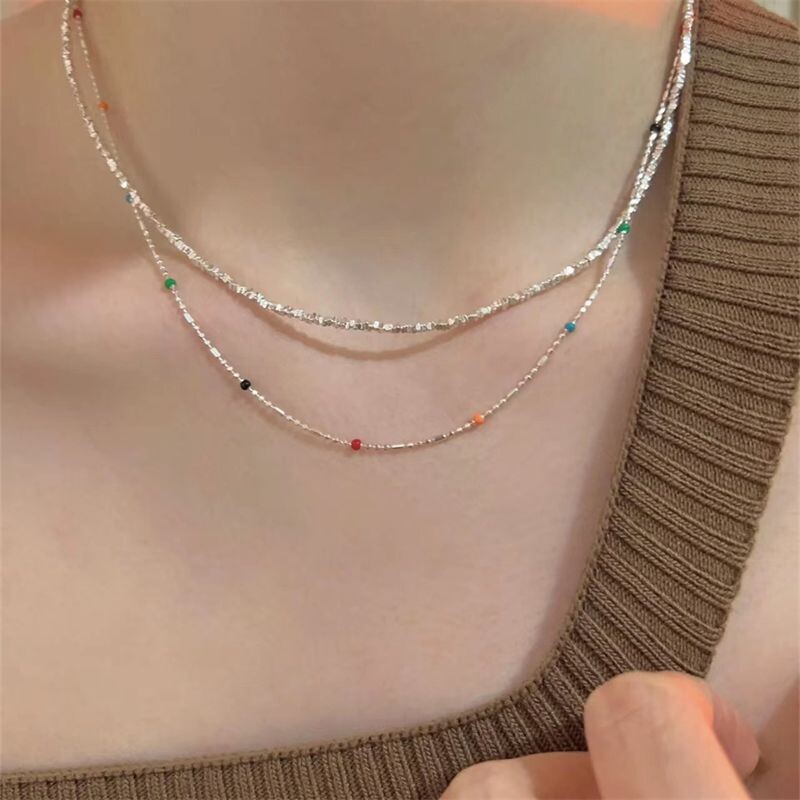 花雾意境彩色小豆子串珠项链双层叠戴碎银可调节仙女锁骨链可爱