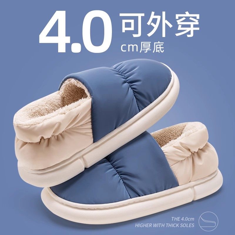 亚束棉拖鞋男士破茧外穿厚底增高情侣大码室内居家冬季保暖女新款
