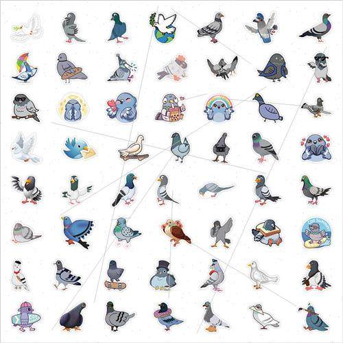 50 cartoon cute pigeon doodle stickers luggage guitar statio