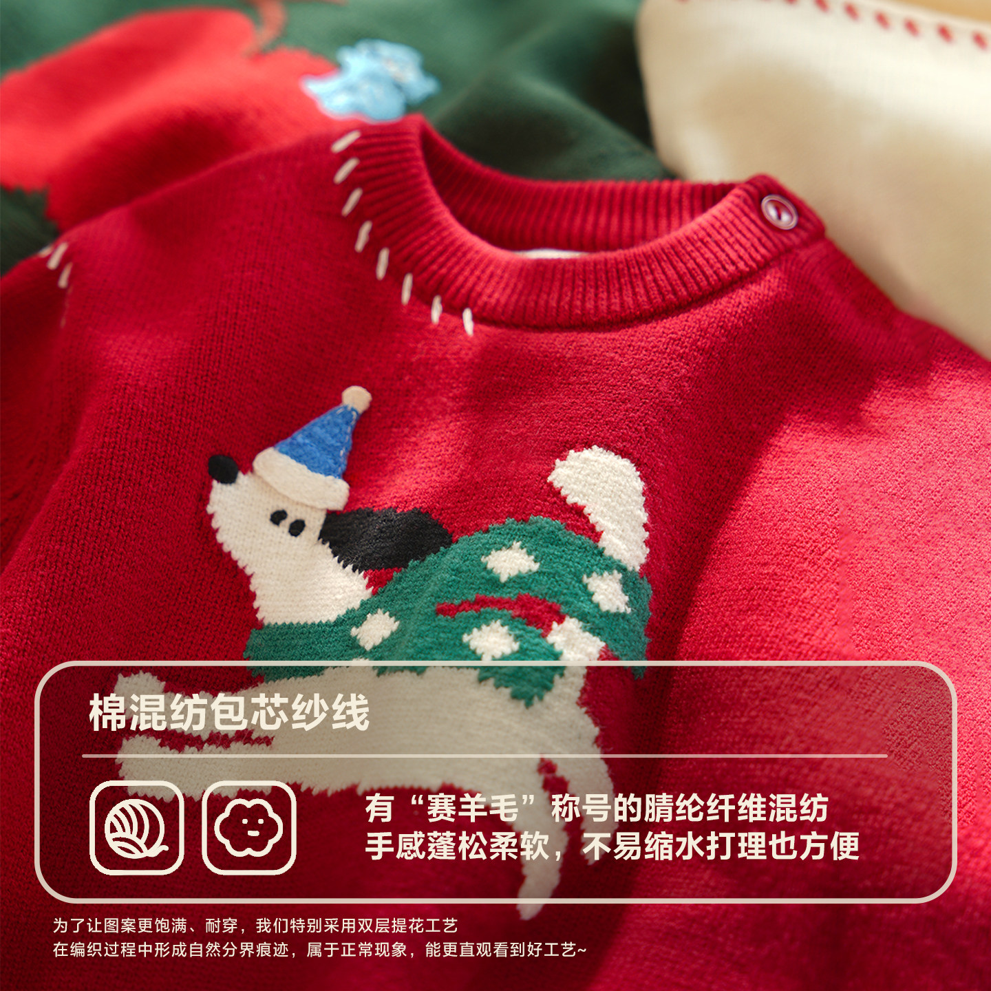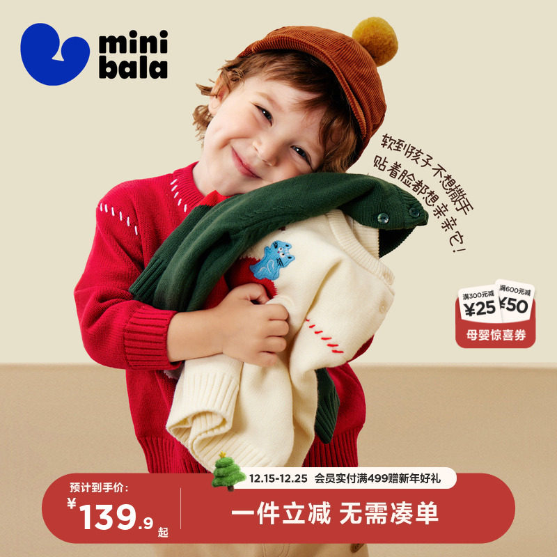 迷你巴拉巴拉男女童宝宝毛衫冬纯棉里布萌趣图案新年红色圣诞毛衣
