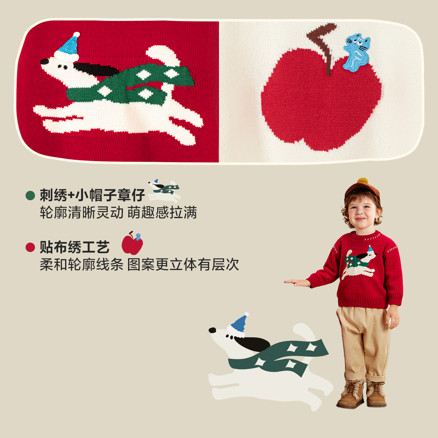 [骏马福裳]齐齐熊男童毛衣开衫冬装新年红色加厚宝宝毛线外套上衣