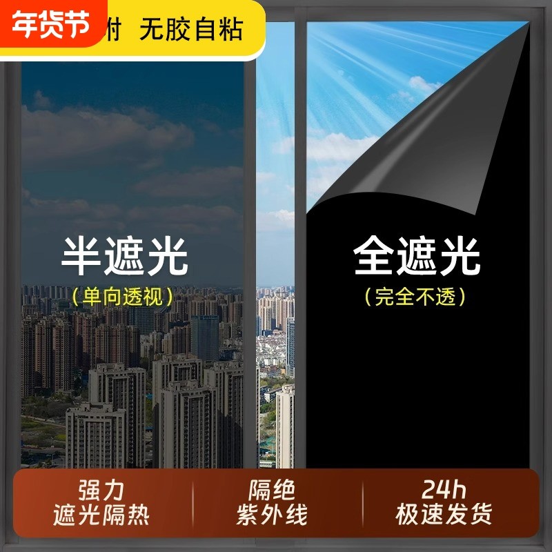 全遮光玻璃贴纸防晒隔热黑色窗户贴膜遮阳防窥视防走光单向隐私