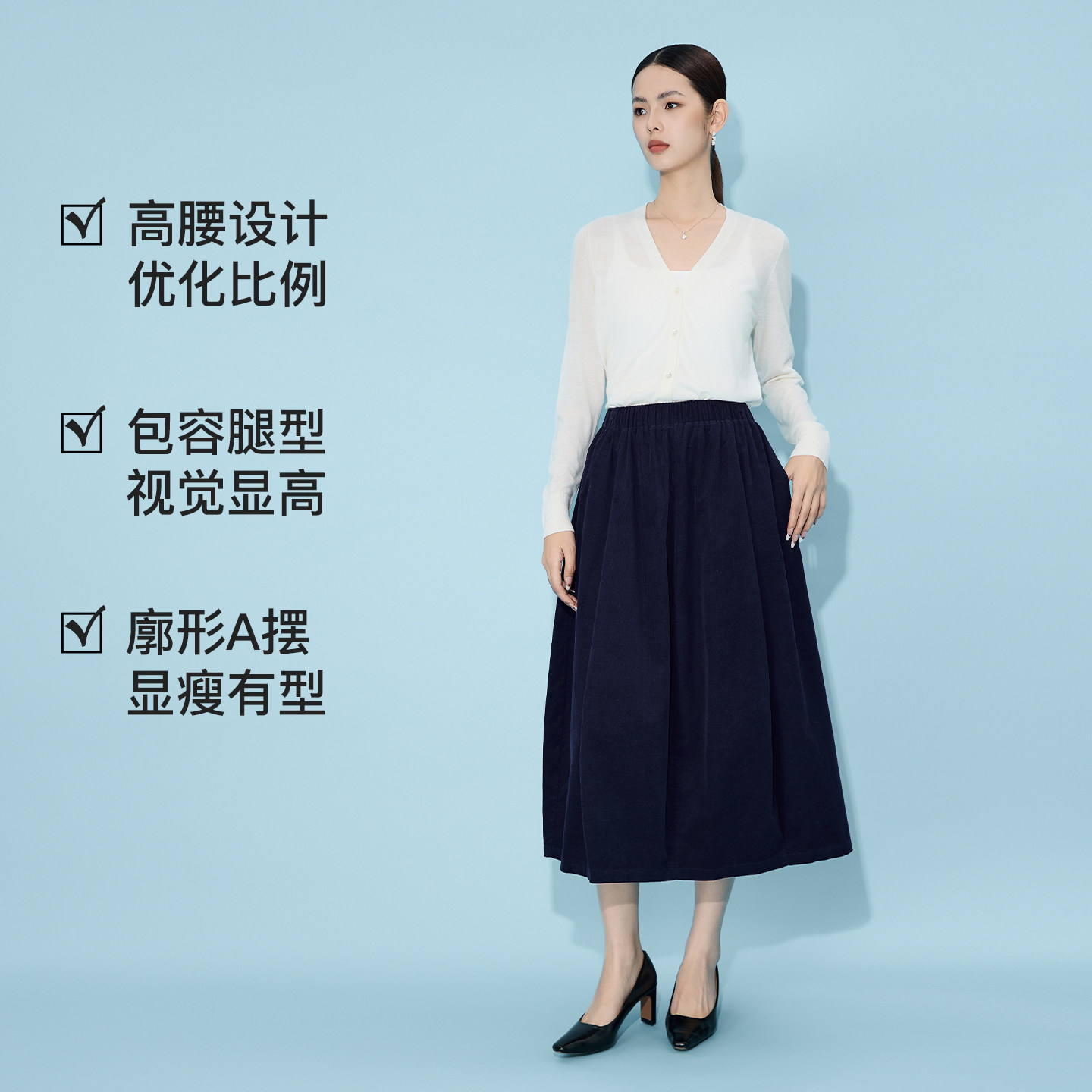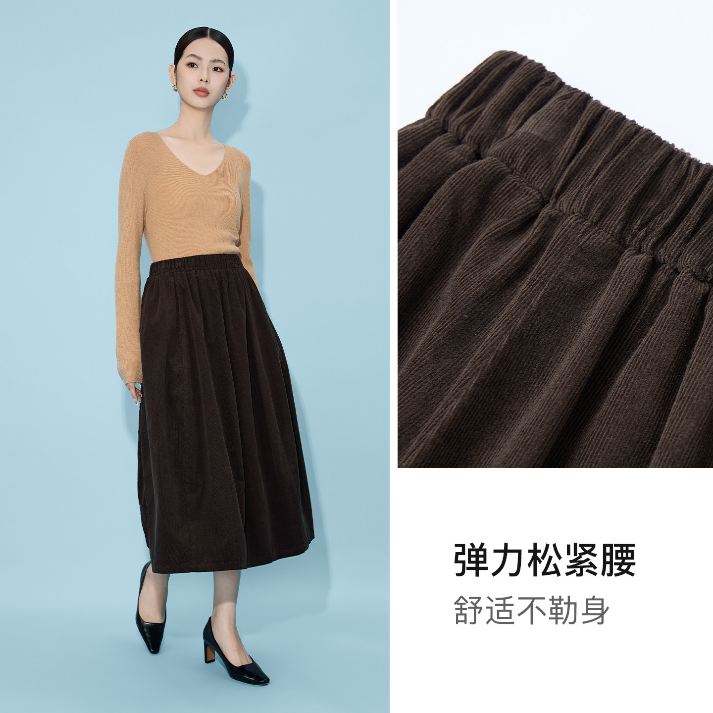 马天奴2025秋季新款纯色纯棉松紧腰半身裙半裙子A字裙时尚百搭女