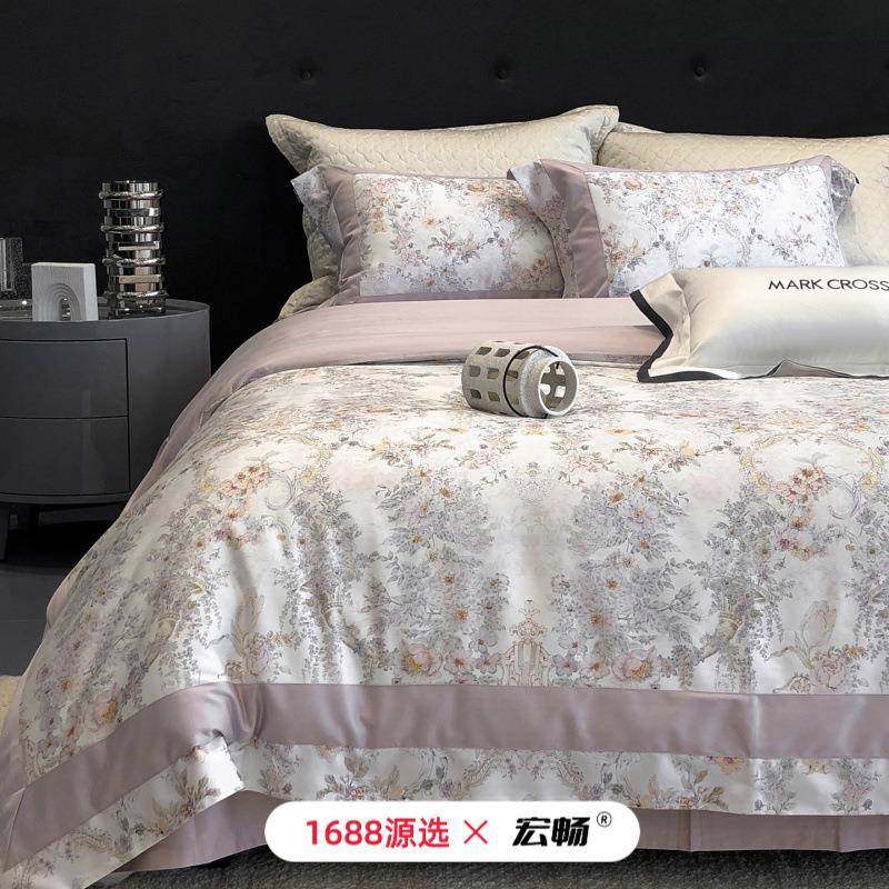 160支超细旦天丝棉磨毛四件套法式花卉秋冬长绒棉印花高端款套件