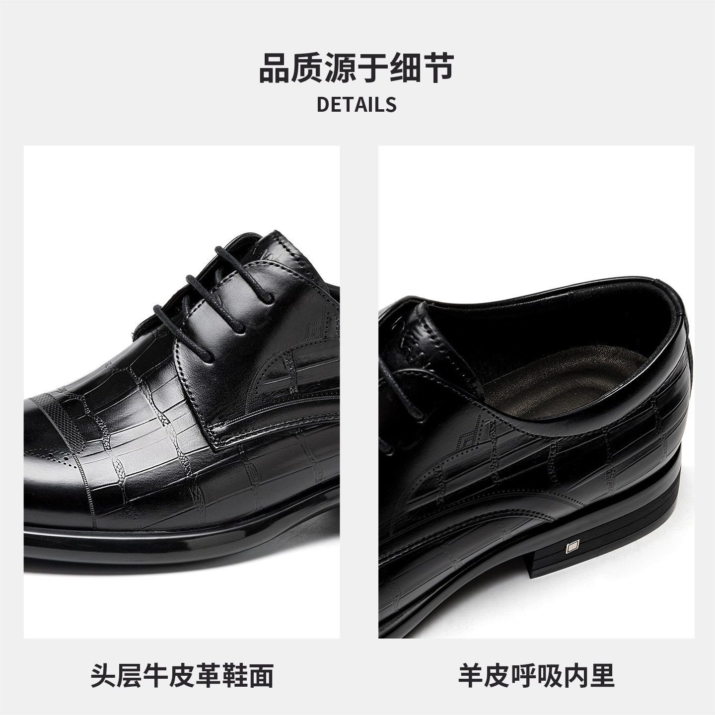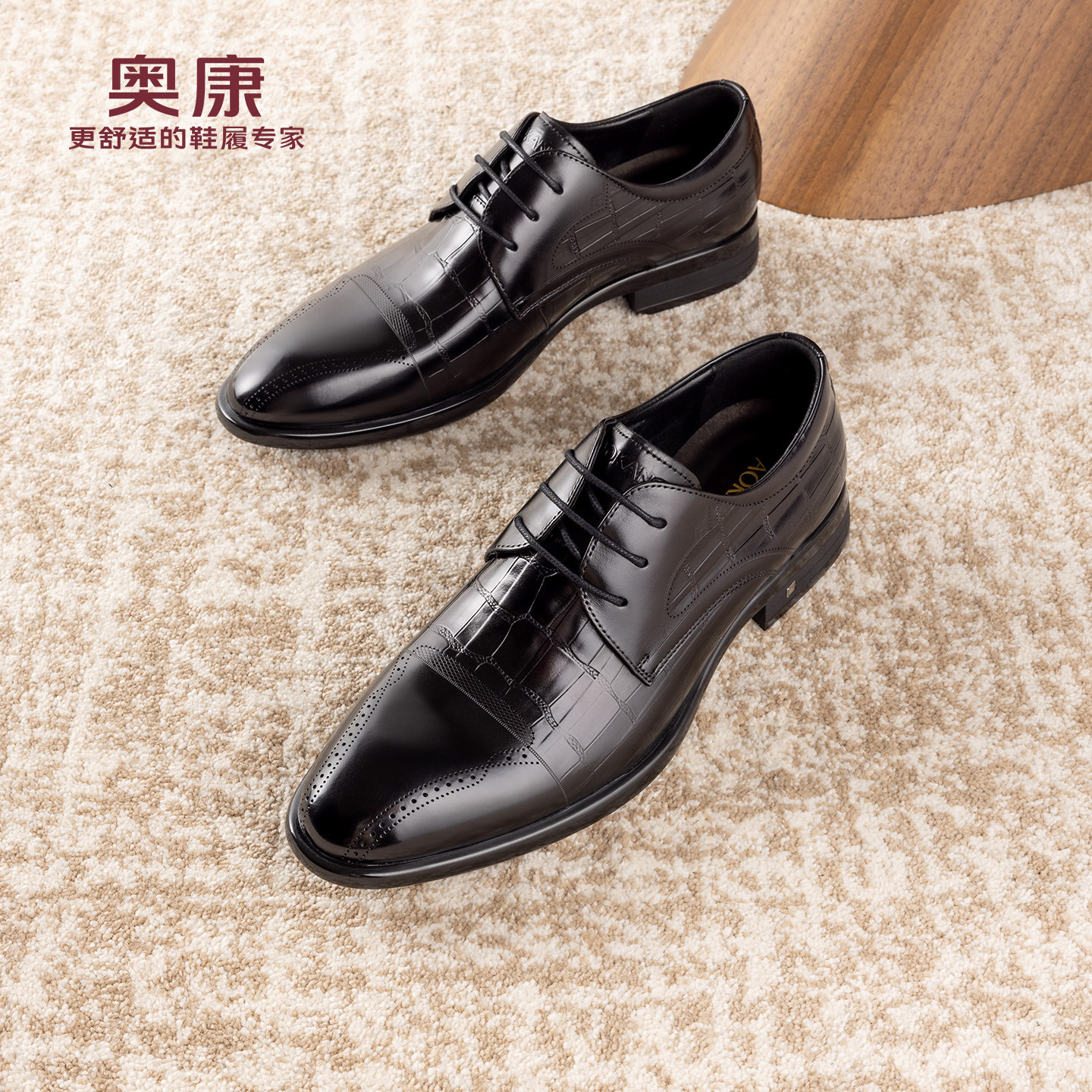 【内增高】奥康男鞋春秋季新款商务正装德比鞋男真皮压花男士皮鞋