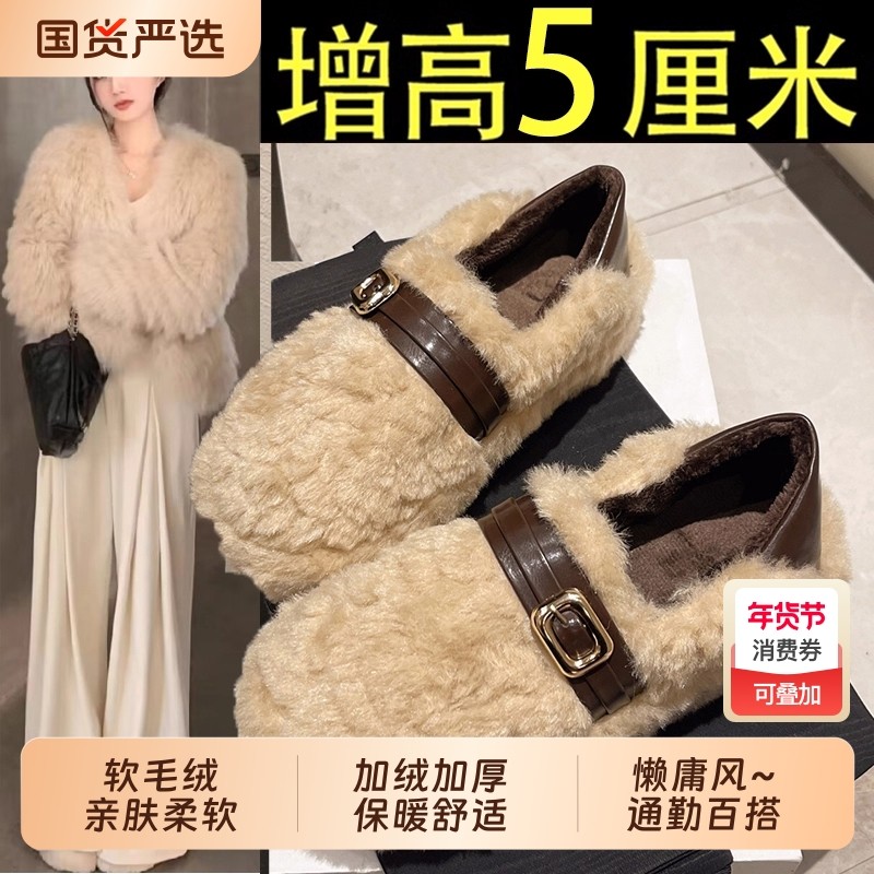厚底内增高毛毛鞋女外穿2025新款冬季雪地靴一脚蹬晚晚鞋毛绒棉鞋