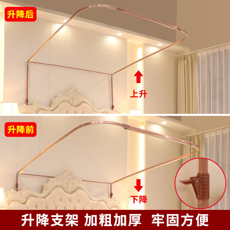 新品家装u型蚊帐家用卧室免安装伸缩支架2024加密加厚风落地蚊帐