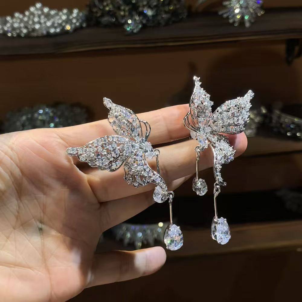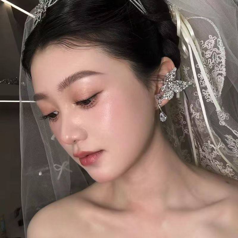 新娘饰品闪钻耳夹蝴蝶精美耳骨夹耳饰轻奢气质时尚设计感婚礼搭配