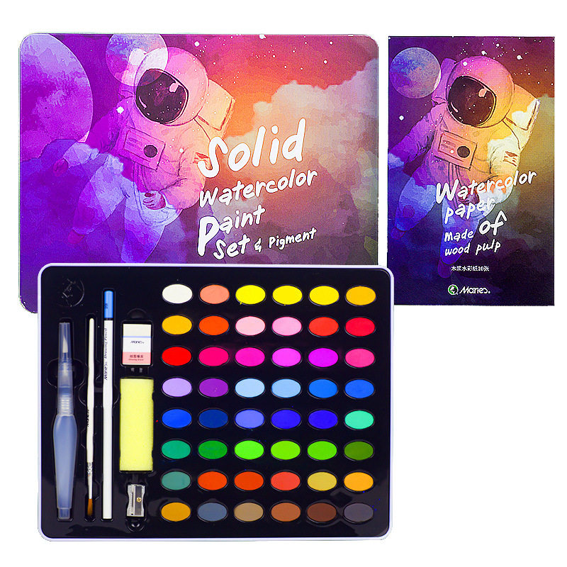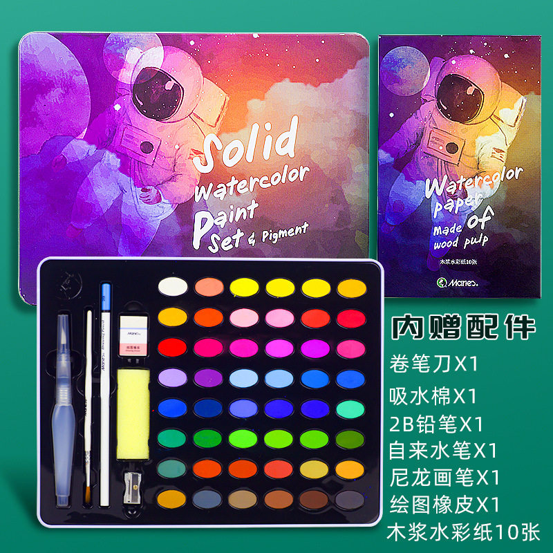 马利牌固体水彩颜料套装小铁盒子48色水彩画粉饼美术生专用分装盒固体水彩颜料套装固体水彩颜料24色固体颜料