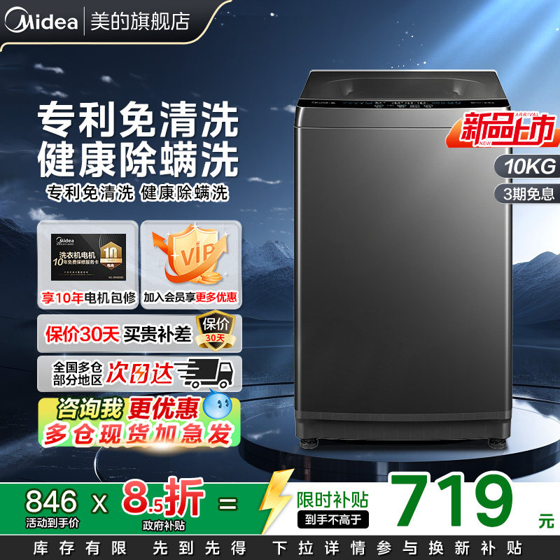 【新品上市】美的10kg大容量波轮洗衣机家用除菌螨全自动洗脱37T
