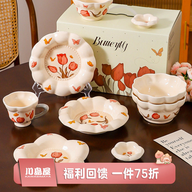 川岛屋法式餐具套装家用2025新款高颜值碗盘餐具礼盒乔迁新婚礼物