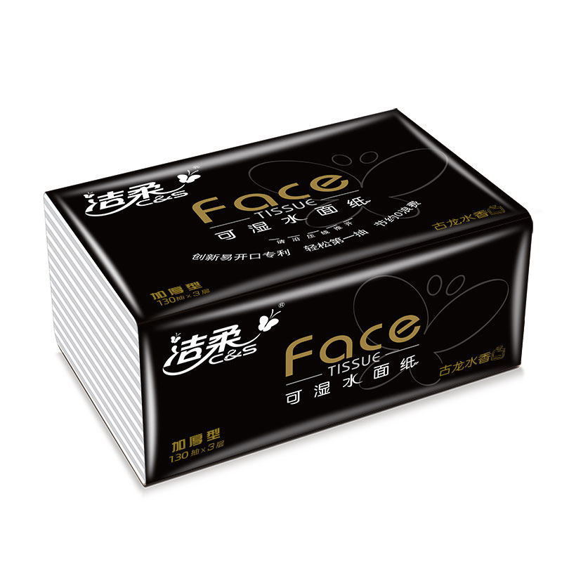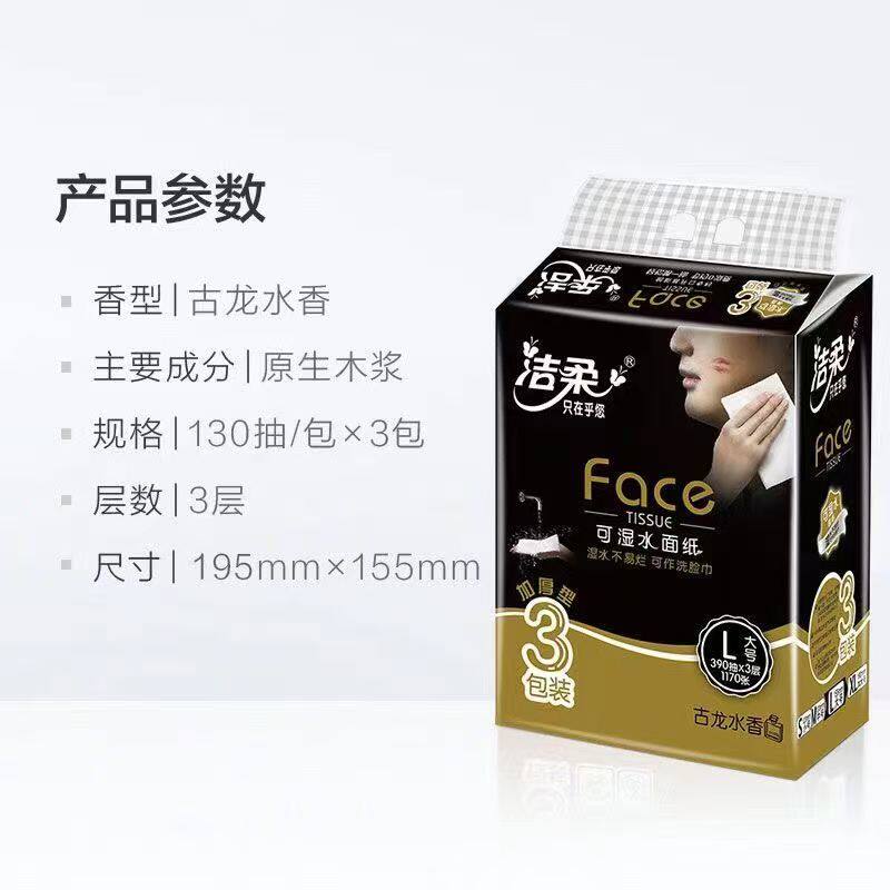 【洁柔加量】抽纸130抽古龙水香味纸巾大号3层可湿水面巾纸家用