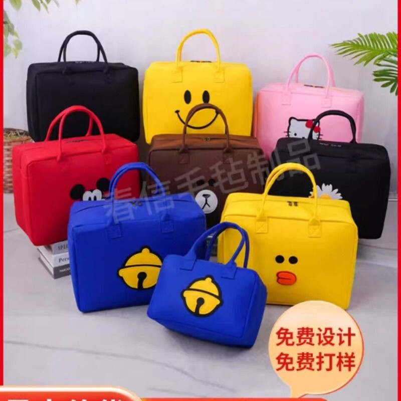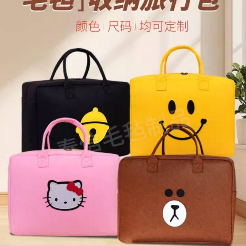 手提毛毡旅行包大容量待产收纳毛毡包卡通拉链轻便行李箱装衣服