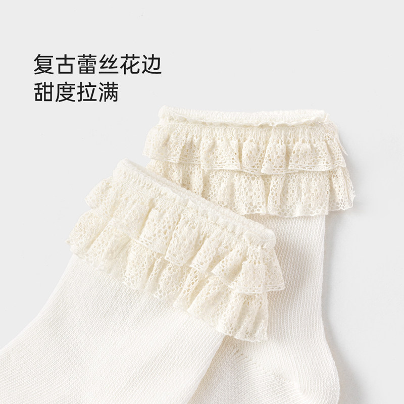 babylove婴儿袜子春秋女宝宝中筒袜可爱甜美蕾丝边公主袜不勒棉袜