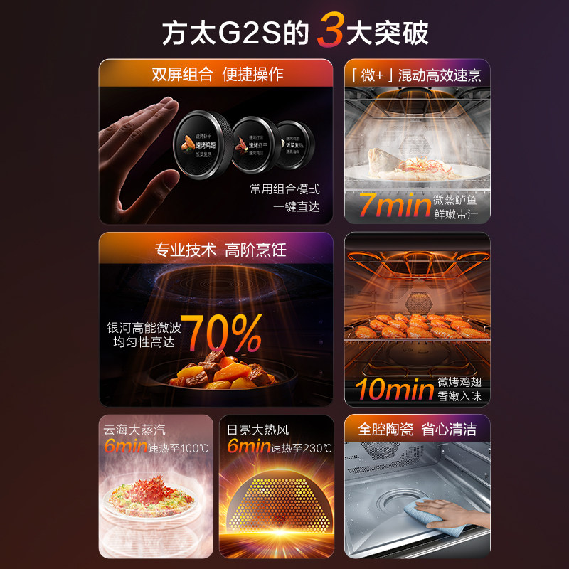 方太微蒸烤一体机G2S嵌入式蒸箱烤箱微波炉蒸烤炖炸五合一