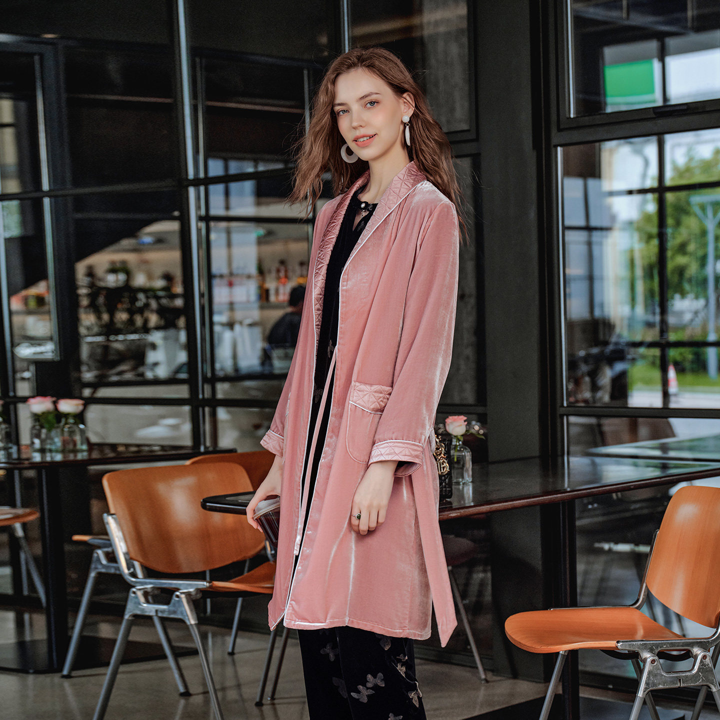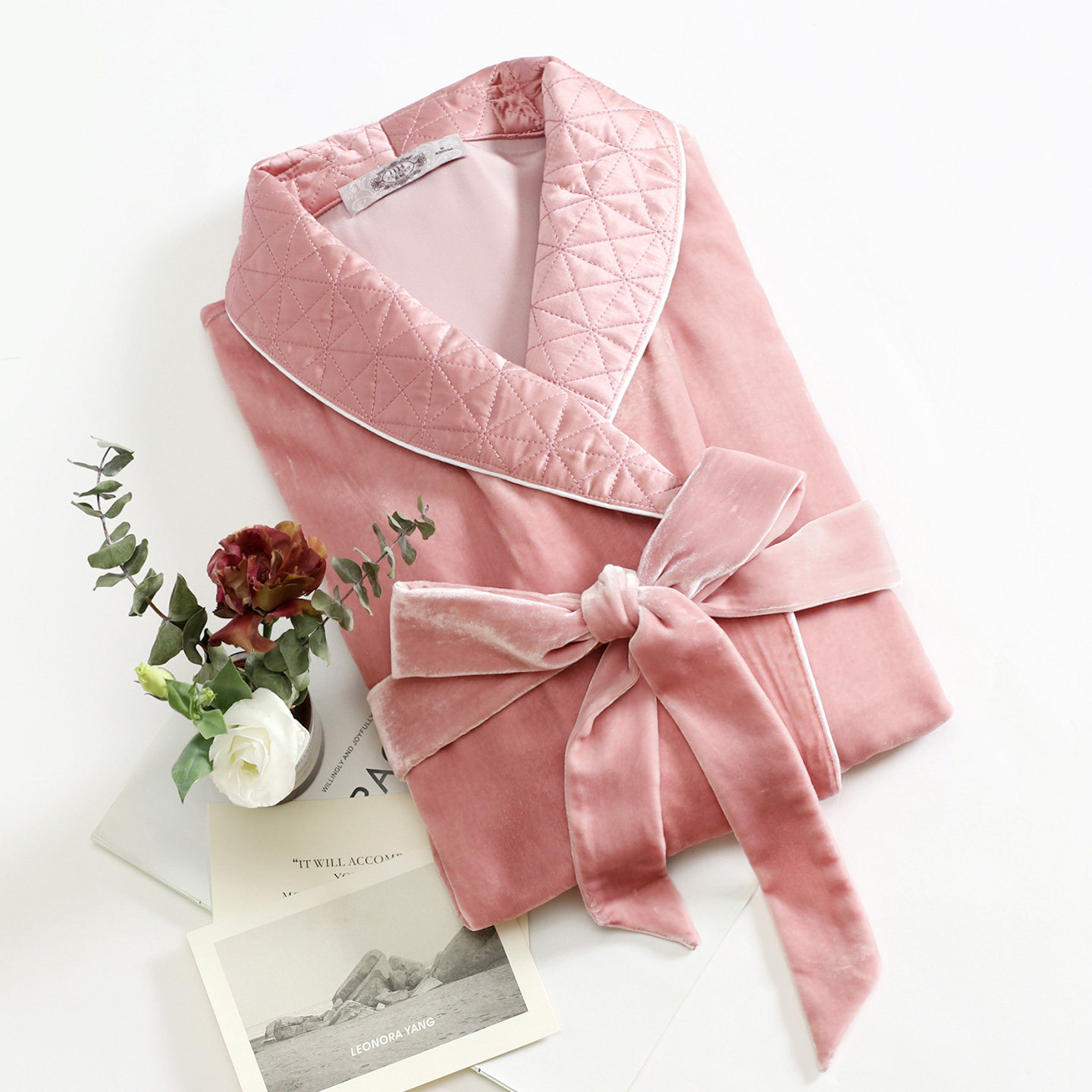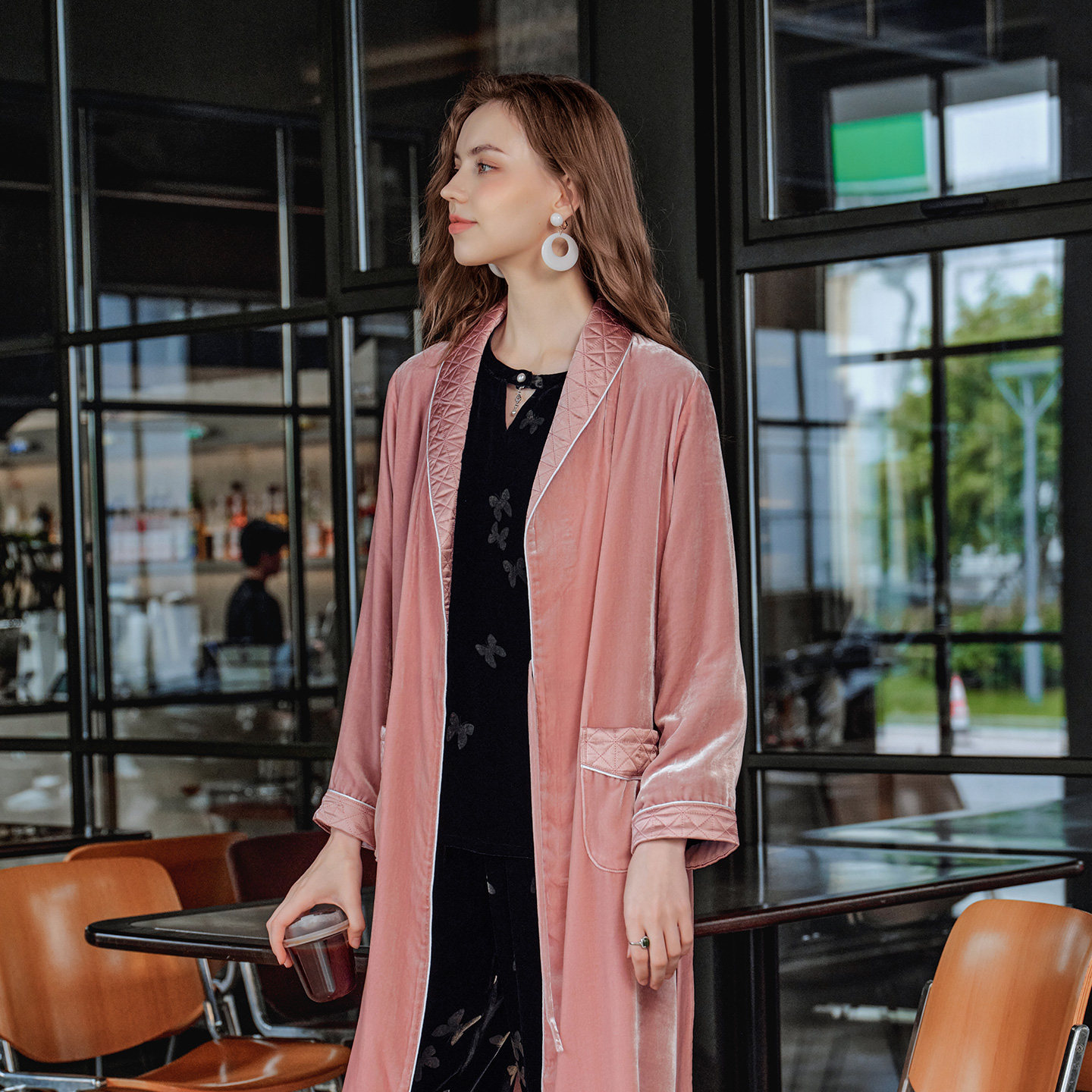 美标秋冬金丝绒睡袍女士加厚中长款真丝睡衣浴袍丝绸可外穿家居服