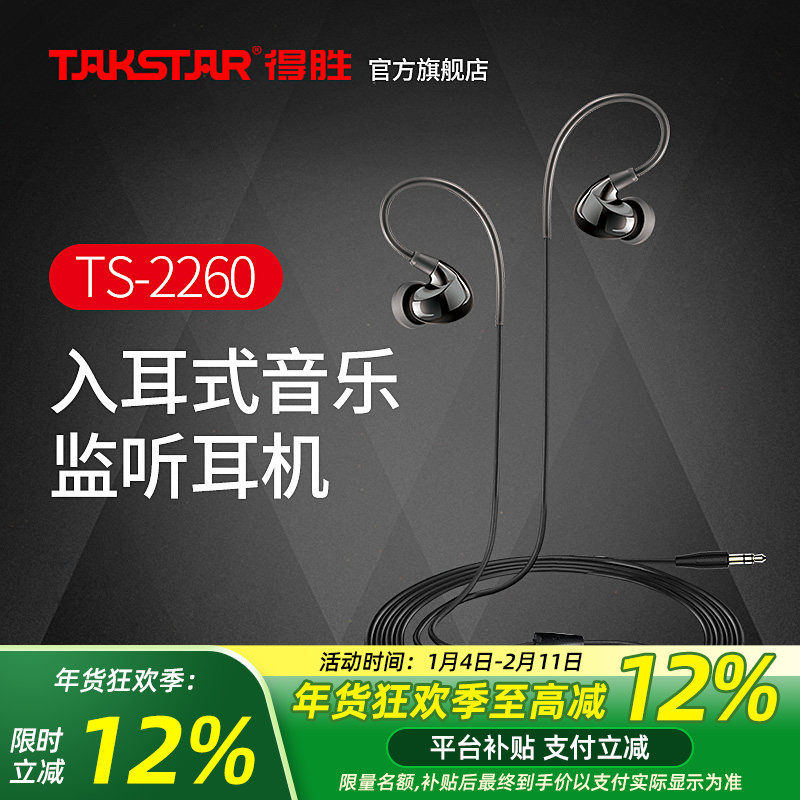 得胜TS-2260入耳式监听耳机重低音炮手机电脑音乐k歌直播音乐耳机