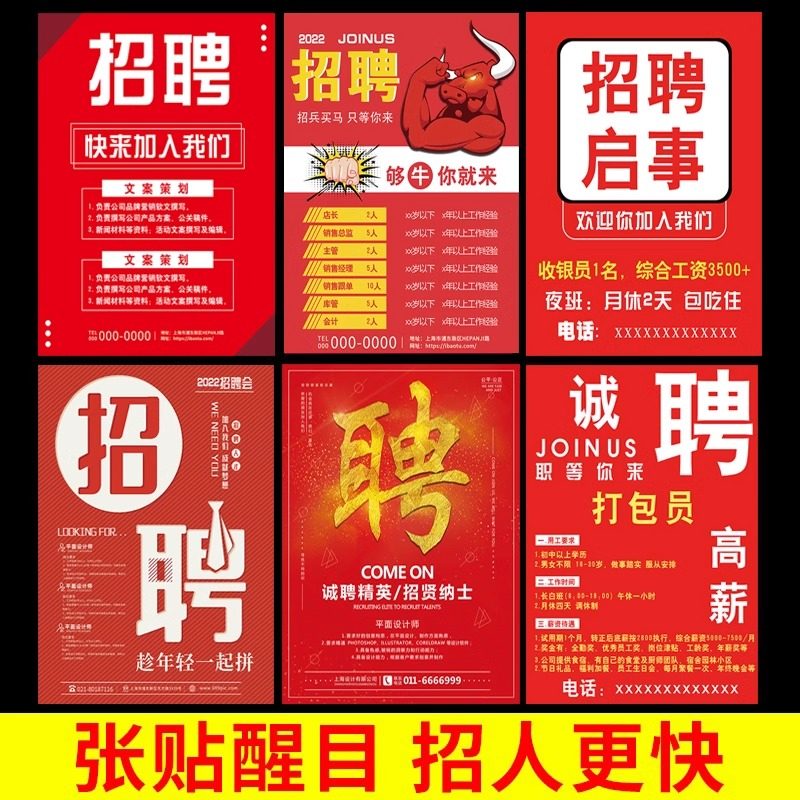 招聘海报设计招工广告贴纸打印招工展架定制餐厅饭店服装店理发店招聘导购员服务员店长广告牌展示架挂牌设计