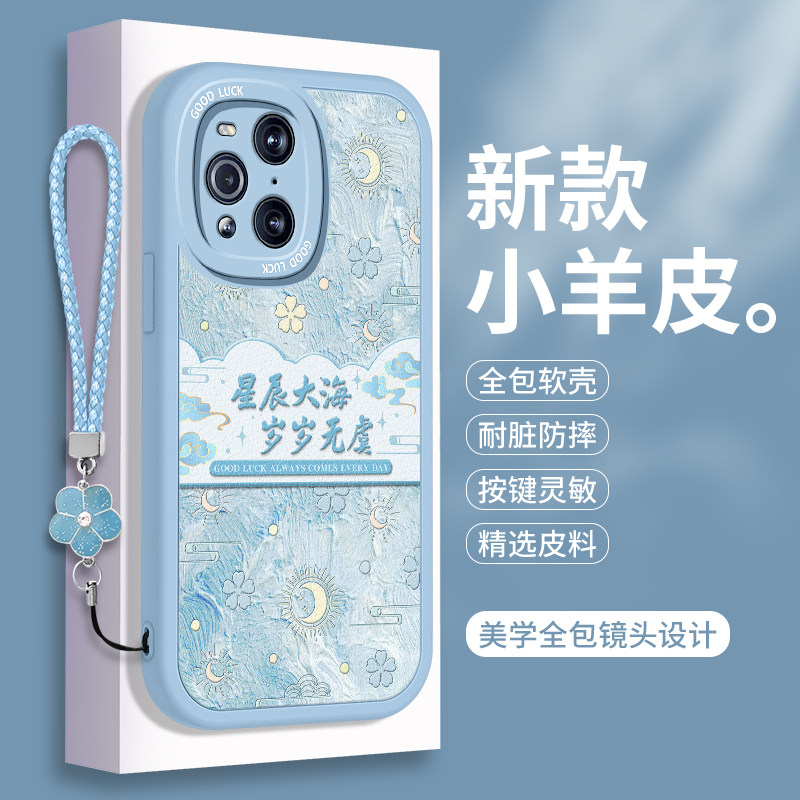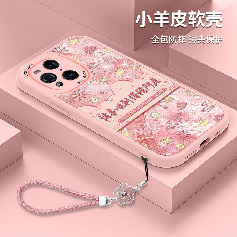 OPPOFindX3手机壳硅胶OPPO Findx3Pro国风OPPOfind小羊皮软壳Find摄影师版X3Por带挂绳全包防摔0pp0保护套女