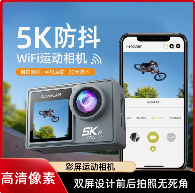 5K运动相机摩托车自行车记录仪头盔防抖防水高清钓鱼潜水下摄像机