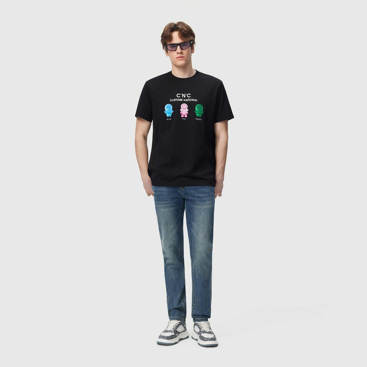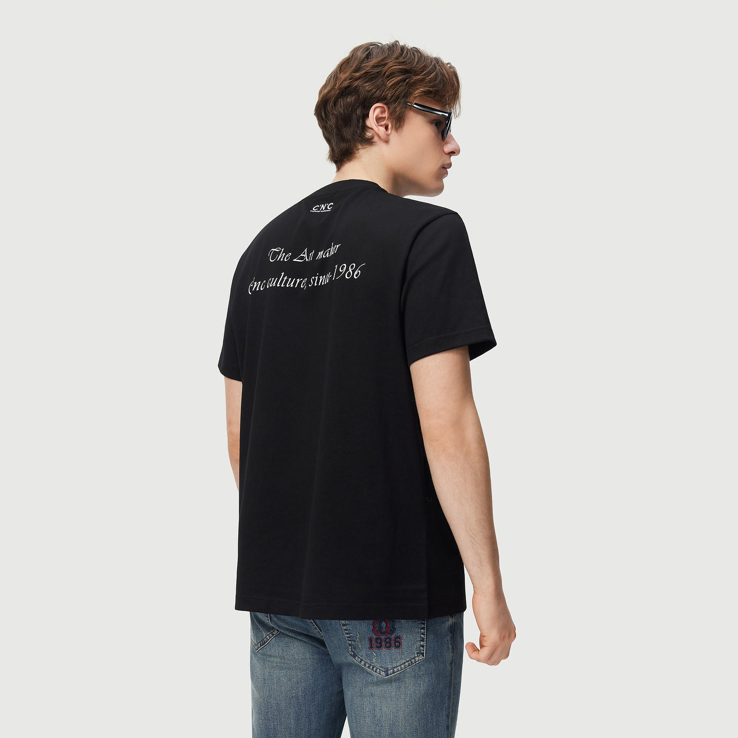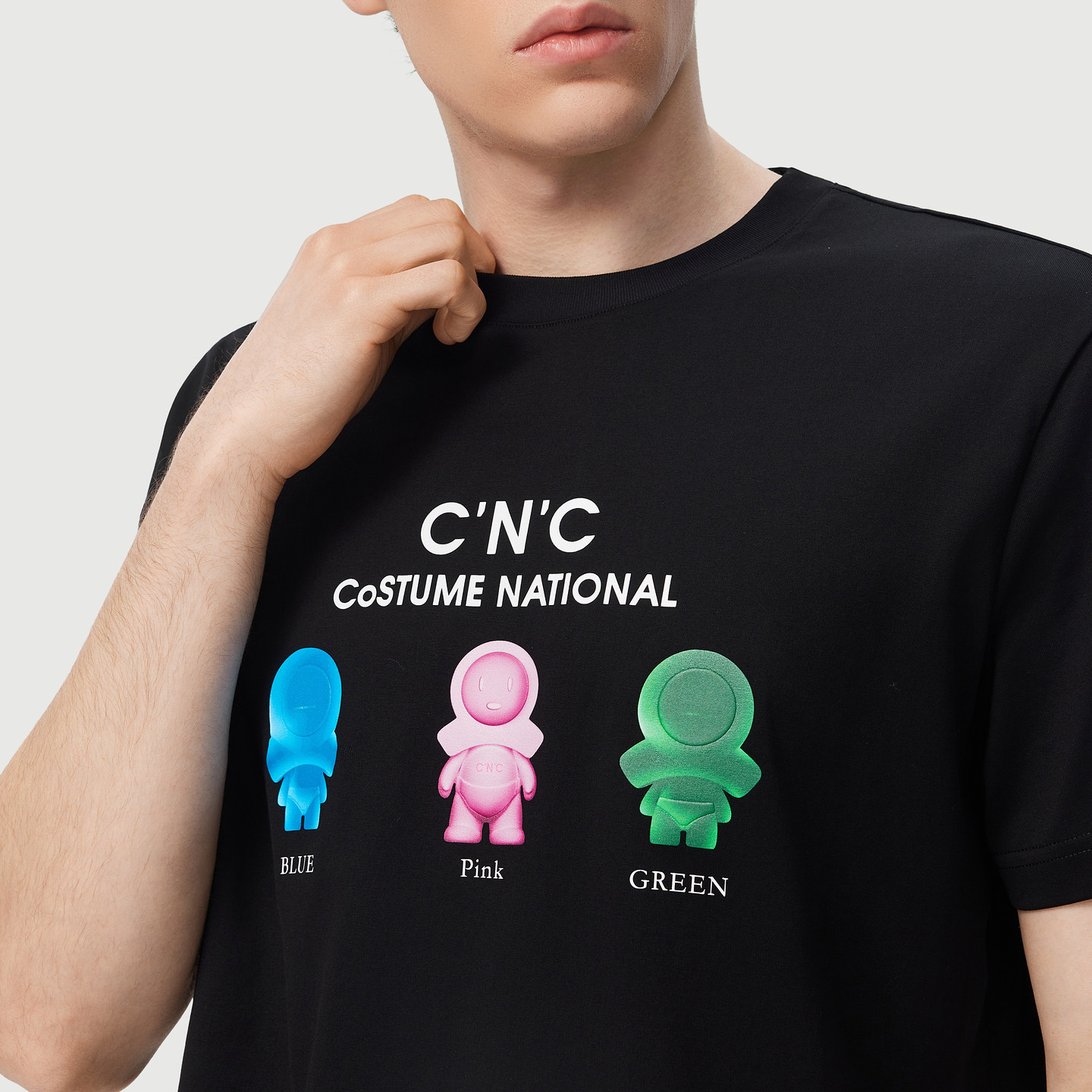 CNC男装春夏新款卡通公仔印花男士短袖T恤圆领黑色时尚休闲短T