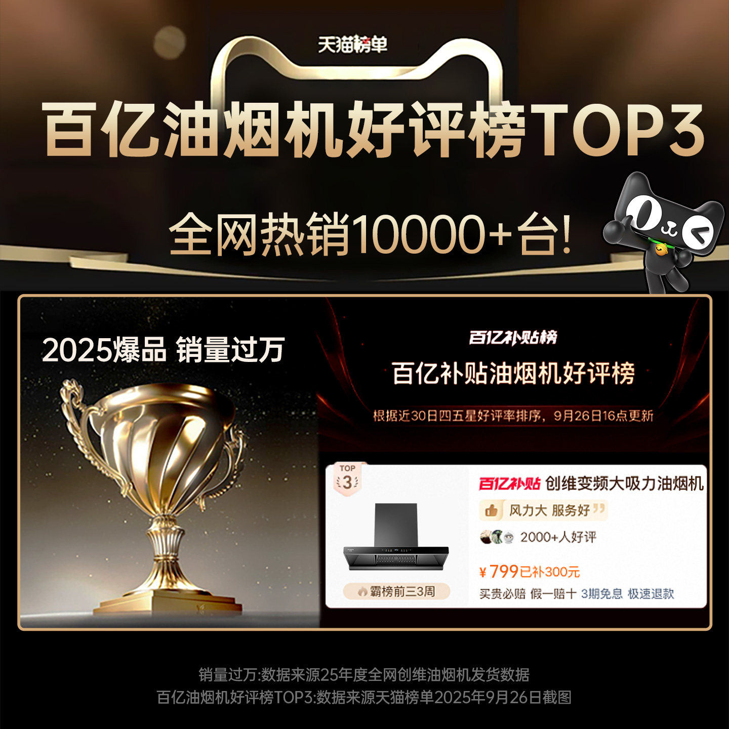 创维Y1H顶吸式抽油烟机家用厨房大吸力欧式吸油烟机以旧换新补贴