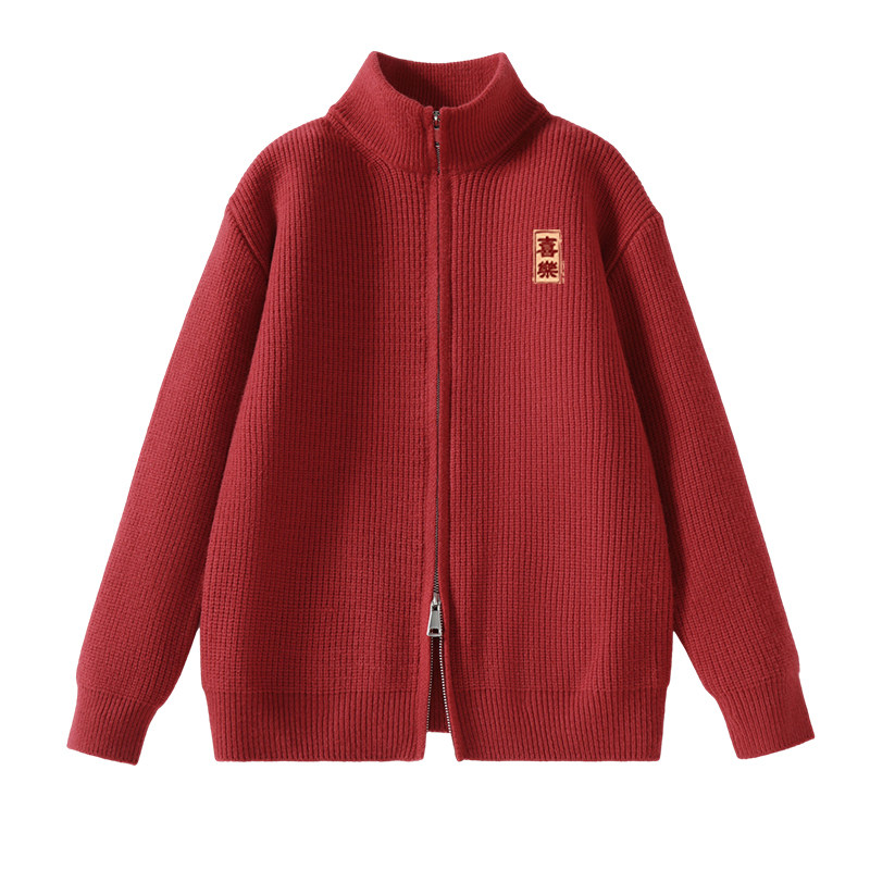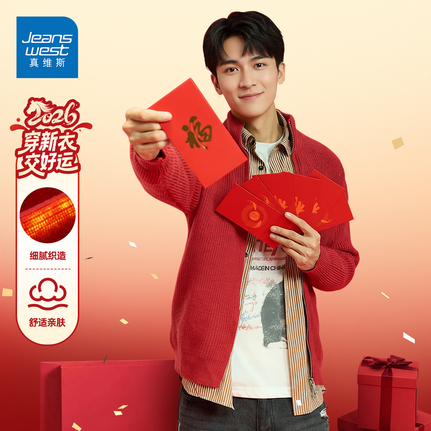 GV真维斯针织衫男款冬款本命年红色开衫外套男马年过年保暖毛衣A