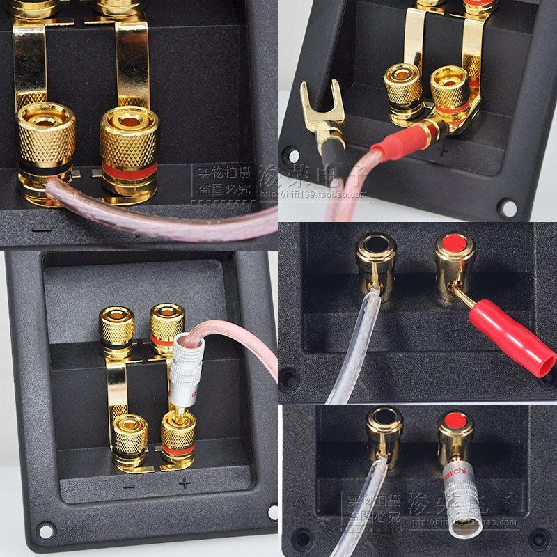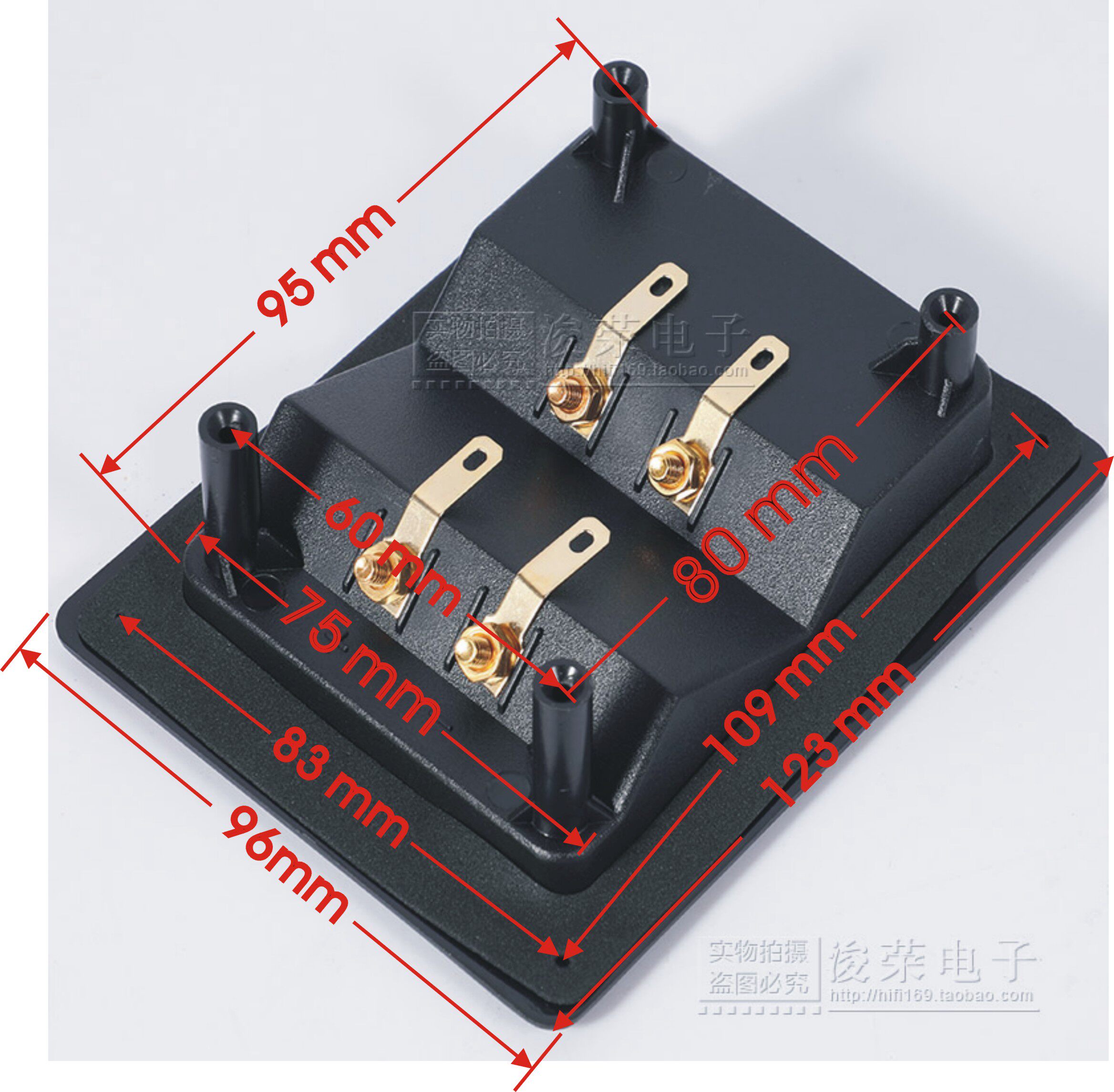 四位音箱接线盒 加厚纯铜喇叭接线板DIY音响配件95*123香蕉插头座