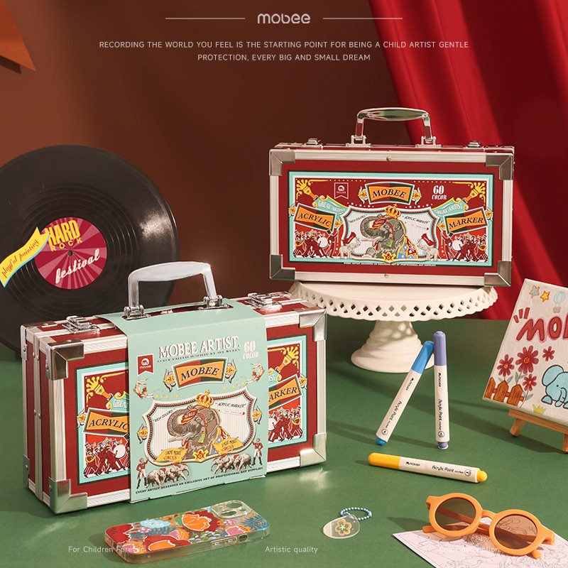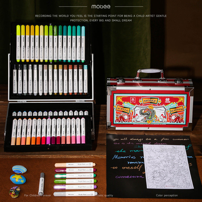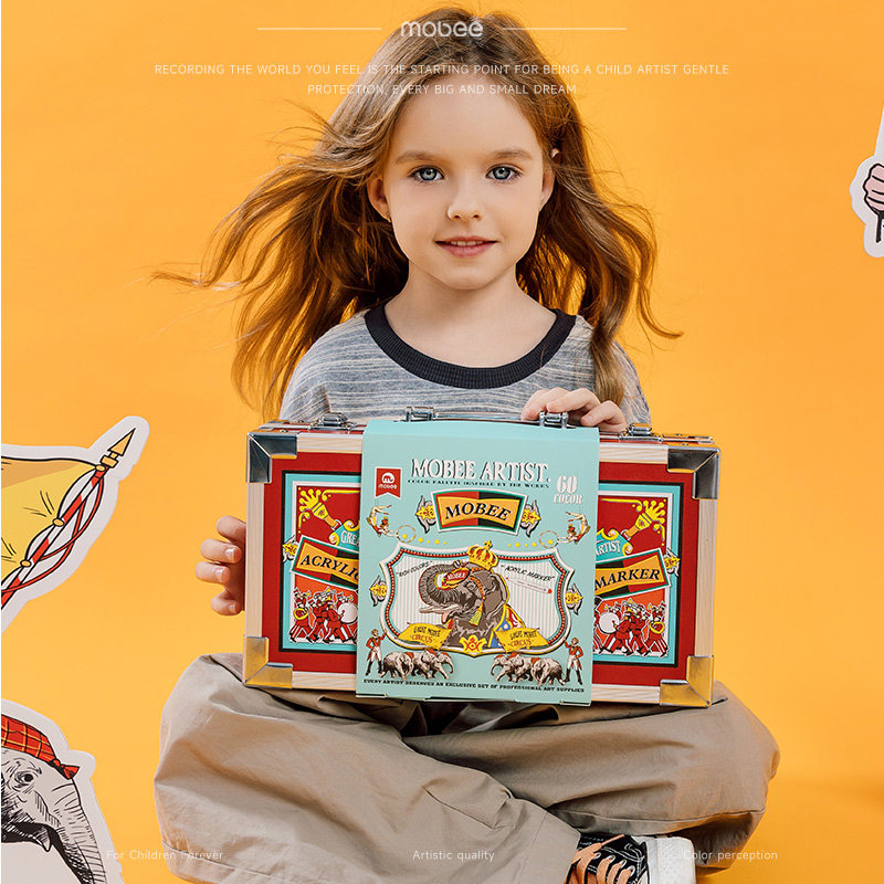 mobee绘画礼盒丙烯马克笔儿童六一生日礼物学生美术彩笔画笔套装