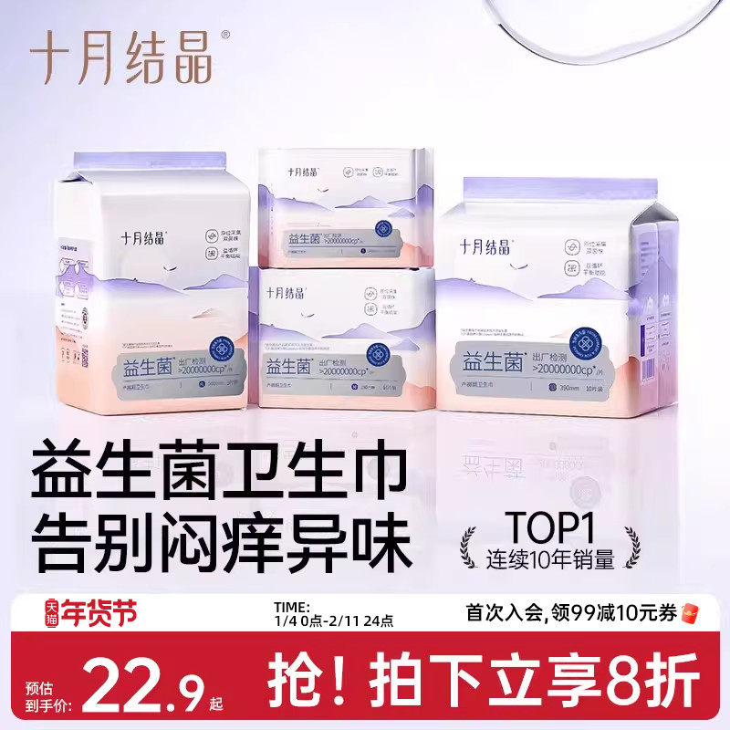 十月结晶产妇卫生巾益生菌产后专用医护级排恶露产褥期月子用品