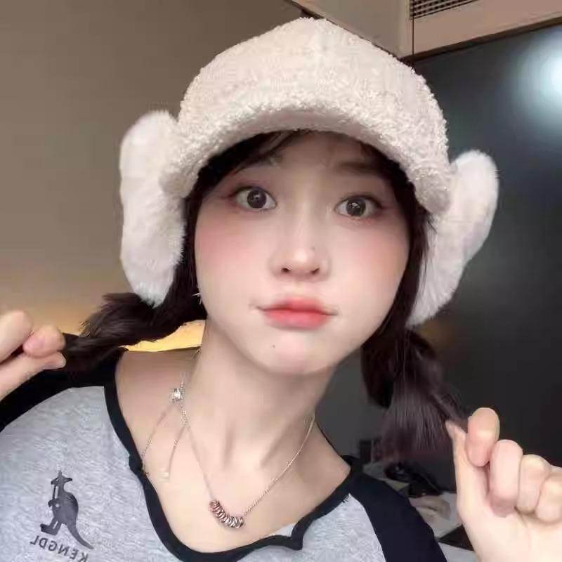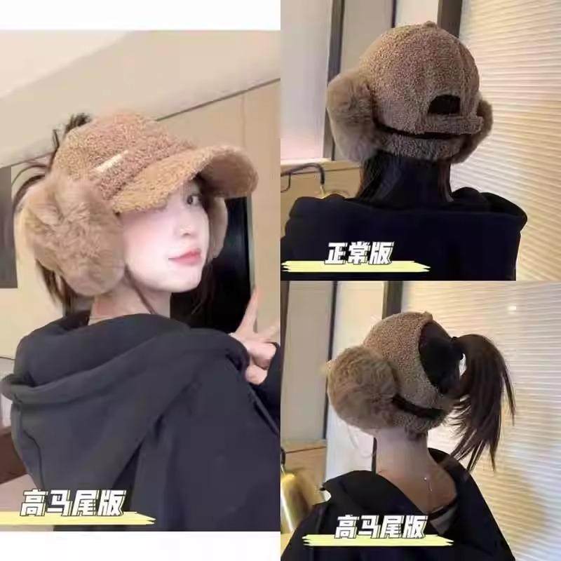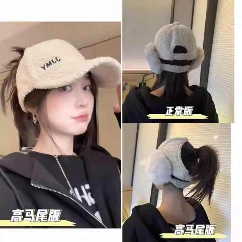 2025年秋冬季新款加厚羊羔毛棒球帽子女防寒保暖可扎马尾鸭舌帽潮